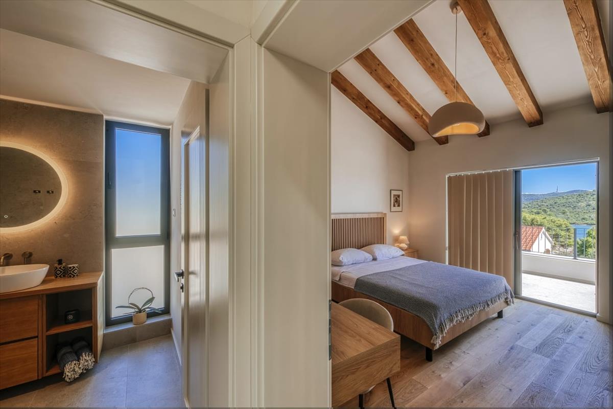 Iž, a Dugi Otok és Ugljan szigetek között található, a dalmát partok egyik kevésbé ismert gyöngyszeme. Mindössze néhány tengeri mérföldre Zadar városától, a sziget érintetlen természeti tájairól, kristálytiszta vizeiről és a fazekasság, valamint az olajbogyótermesztés erős hagyományáról ismert. Mali Iž, ahol a villa található, egy bájos halászfalu, amely tökéletesen egyensúlyozza a békés mediterrán életstílust a szükséges szolgáltatásokkal. a sziget boltokat, autentikus helyi éttermeket, egy kikötőt, sétálóutakat és hozzáférést kínál eldugott öblökhöz és strandokhoz.