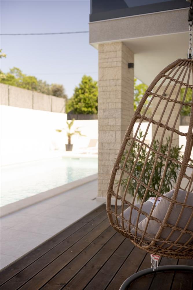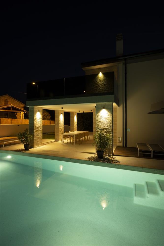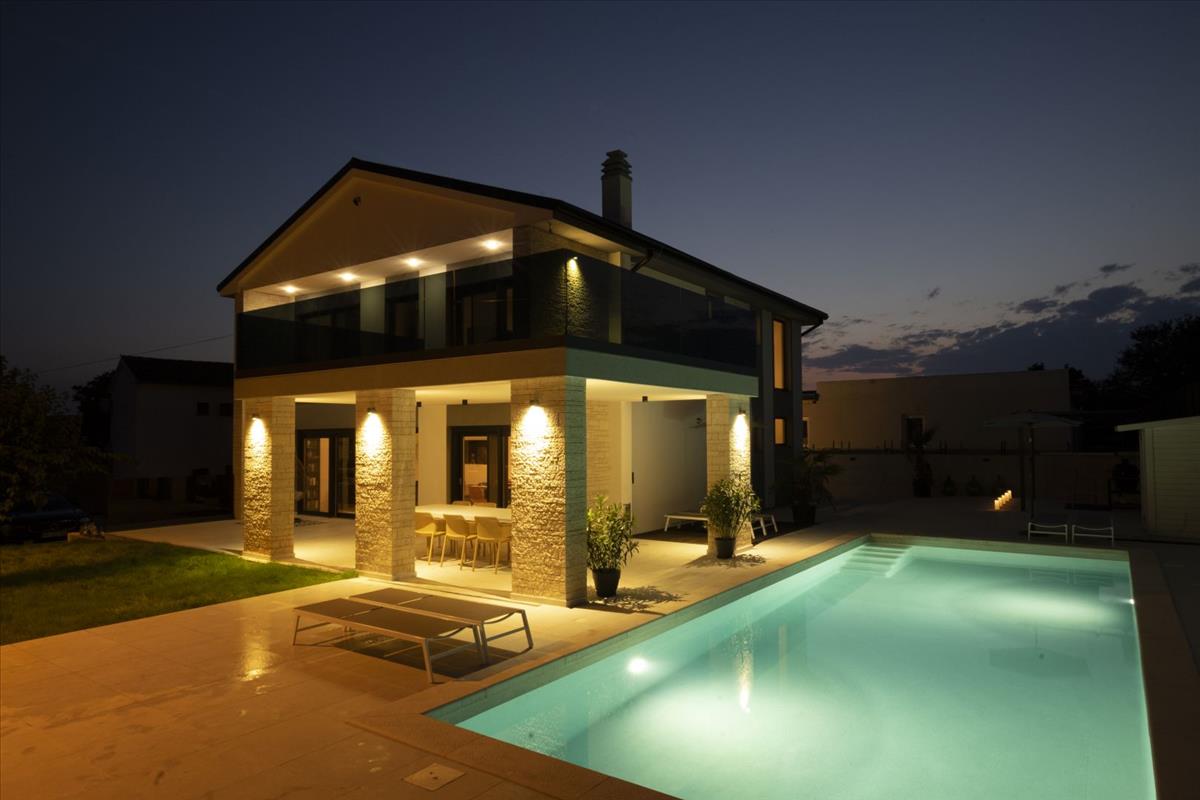 Modern villa saját medencével, mindössze 6 kilométerre a tengertől Rovinj környékén, amely a kényelem, a magánélet és a mediterrán báj tökéletes keverékét kínálja.