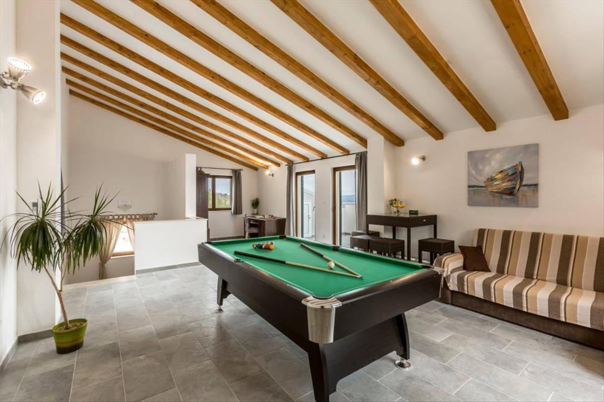 A villa 3. emeletén található egy hihetetlen játékszoba biliárdasztallal és gyönyörű kilátással a tengerre és a szigetekre.