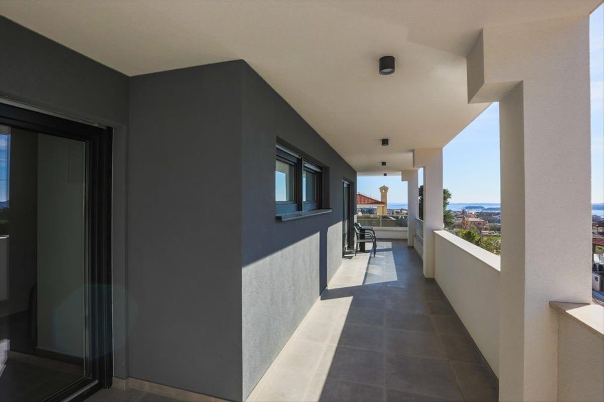 Örömmel kínálunk Önnek egy exkluzív ingatlant – egy modern, energiahatékony villát Medulinban, összesen 300 m² lakóterülettel, egy 740 m²-es telek területén, csendes, emelt helyen, körülbelül 1400 méterre a tengertől.Ez a gyönyörű új villa két szinten terül el, és panorámás kilátást nyújt a tengerre és a környező természetre. Teljesen felszerelt és azonnali költözésre kész.