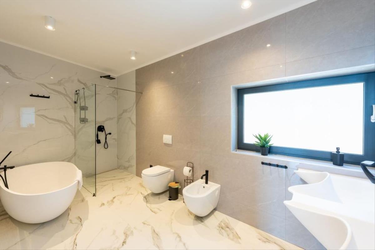 A villa intelligens ház rendszerrel van felszerelve - vezérlés mobil alkalmazásokon keresztül, padlófűtés a földszinten és mennyezeti hűtés. a napelemek előkészítése megtörtént. Ajax riasztórendszer, dvc vizuális megfigyelő rendszer, okos Nuki zár titkosított bejárati ajtóval + billentyűzet, klasszikus kulcs helyett használhatod okostelefonodat, medence mód vezérlés, Bluetooth öntözés vezérlés.