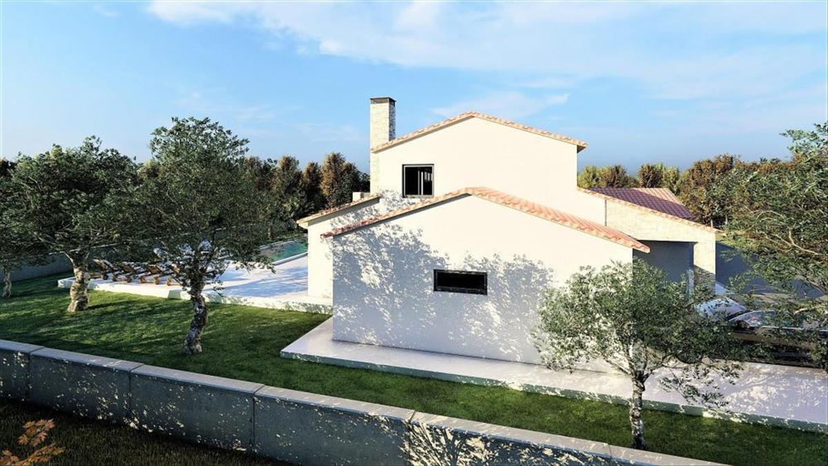Tengerre néző gyönyörű kővilla projektje kb. 10 Km-re a tengertől, Kastelir faluban, Porec közelében.