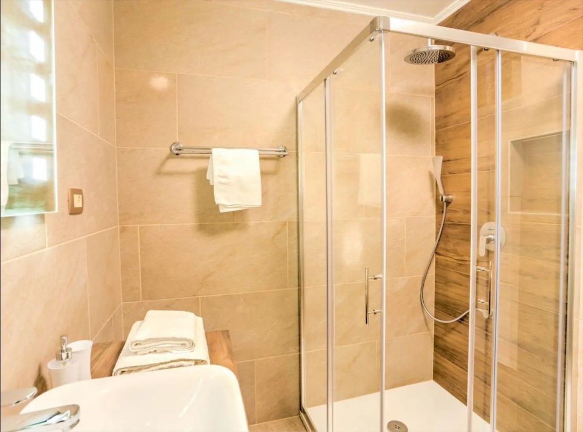 Második emelet: Tágas hálószoba nagy erkéllyel és lenyűgöző kilátással Két további hálószoba, az egyikben 2 külön ágy található Két modern fürdőszoba (zuhanyzós vagy kádas)