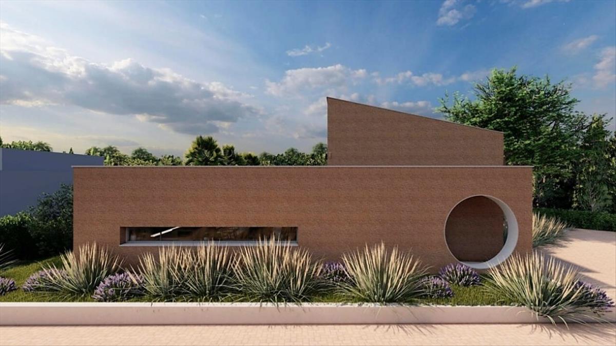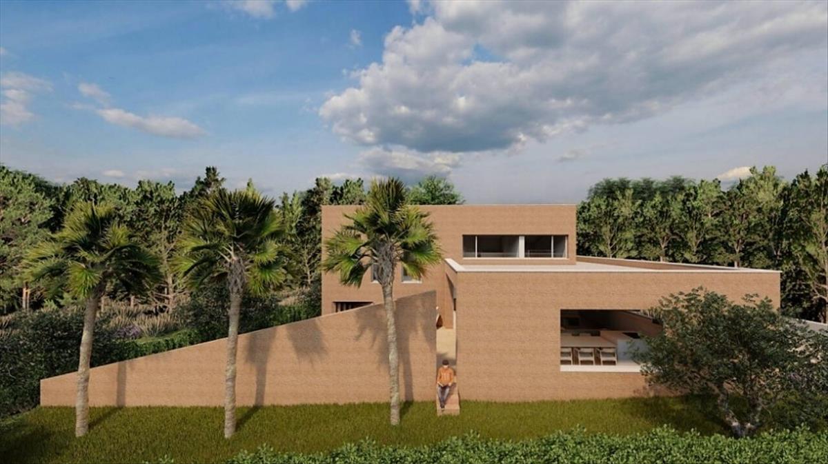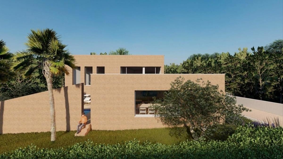 A telek területe 925 m². a ház mellett medence és napozóterület található.