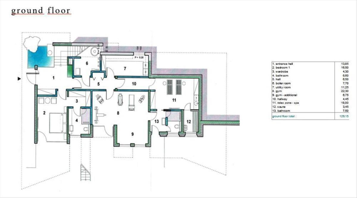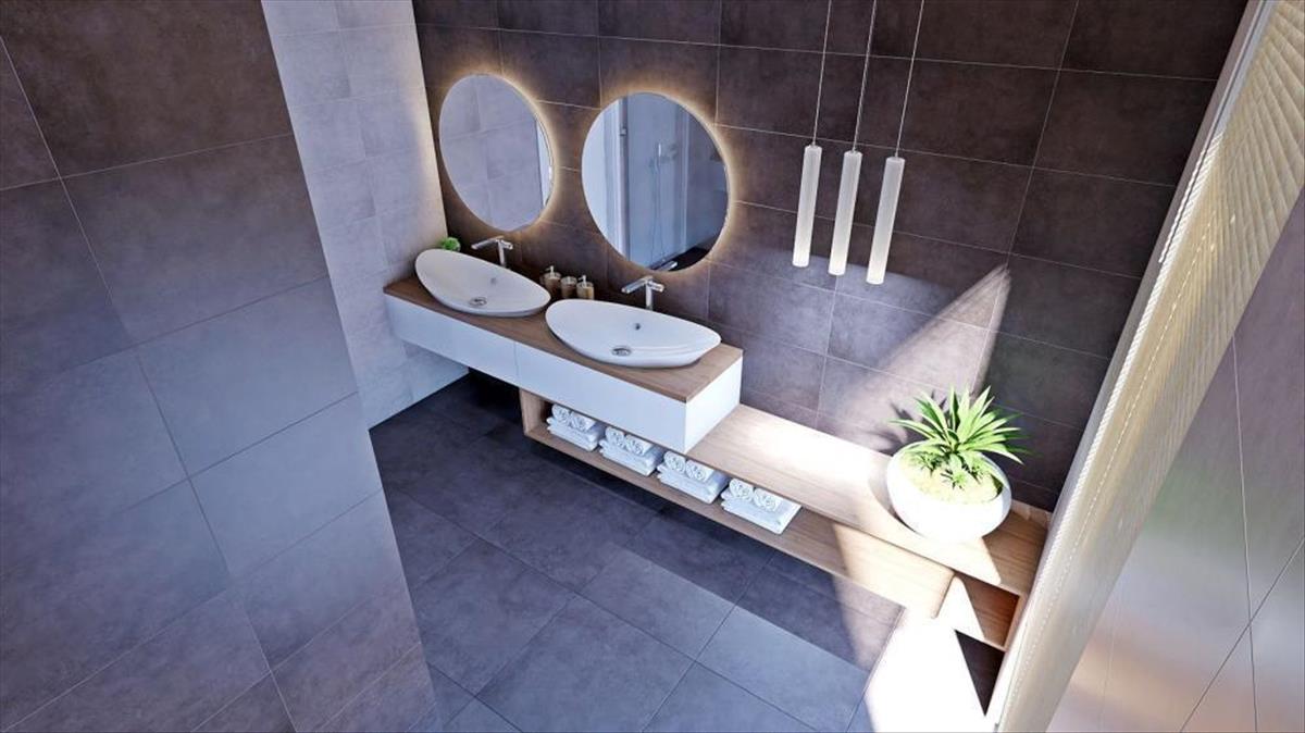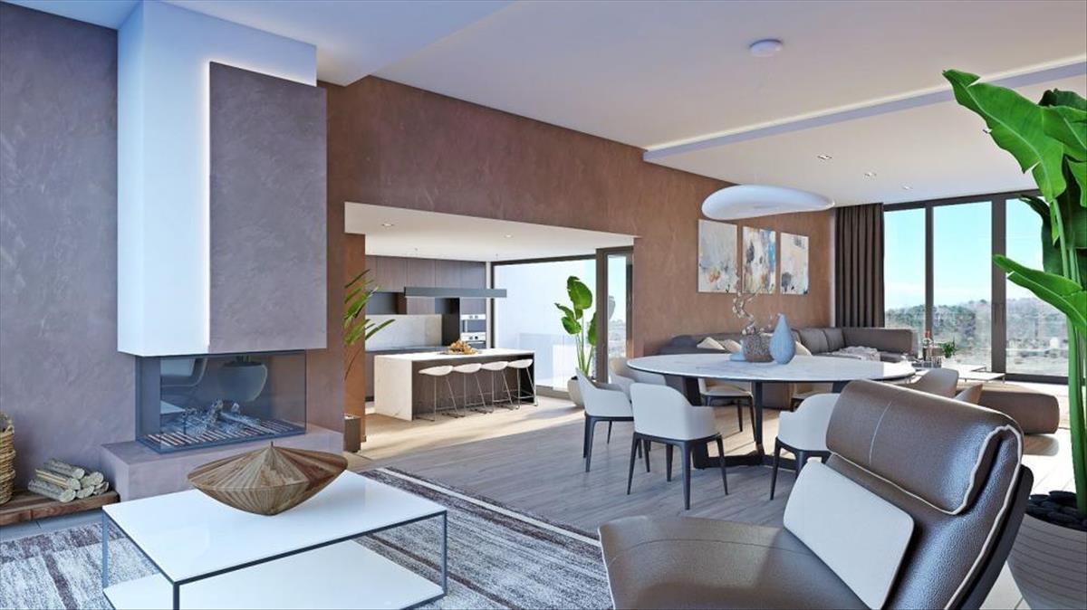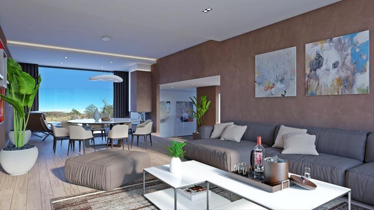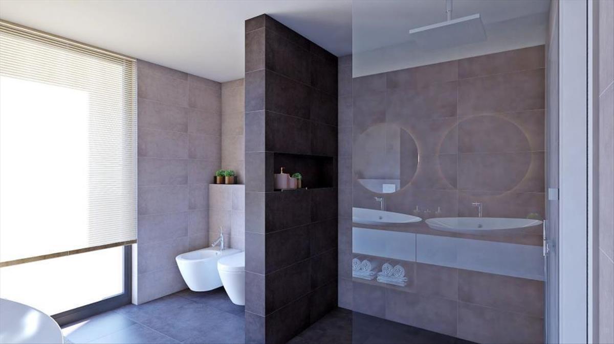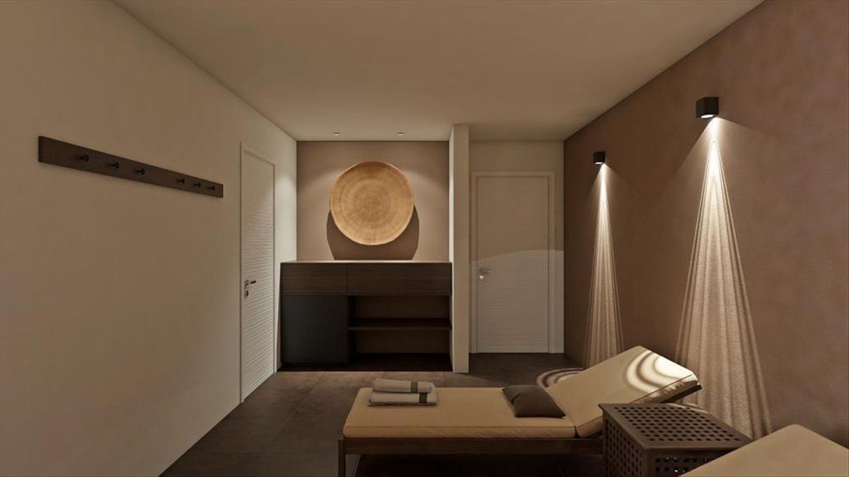 A tágas, nyitott koncepciójú szalon tér a földszinten helyezkedik el, és egy elegáns étkezővel és egy első osztályú konyhával egészül ki, amely a belső lépcsőn kívül egy külső lépcsőn is kapcsolódik a kültéri térhez. a földszinten található egy hálószoba saját gardróbbal és fürdőszobával, egy edzőterem professzionális fitnesz felszereléssel és egy pihenőzóna szaunával, amelyeket egy fürdőszoba, egy felszerelés tárolására szolgáló helyiség és egy mosókonyha köt össze. a funkcionalitás mellett a rendkívül professzionális tervezés különös figyelmet fordít a belső és külső határokra, és a teraszos terepnek köszönhetően ideális kommunikációt sikerült elérni a kert és a villa között. a földszinten egy fűtött végtelenített medence található napozóterülettel, ahonnan a lépcsők a második szintre vezetnek, ahol egy grillező terület található.