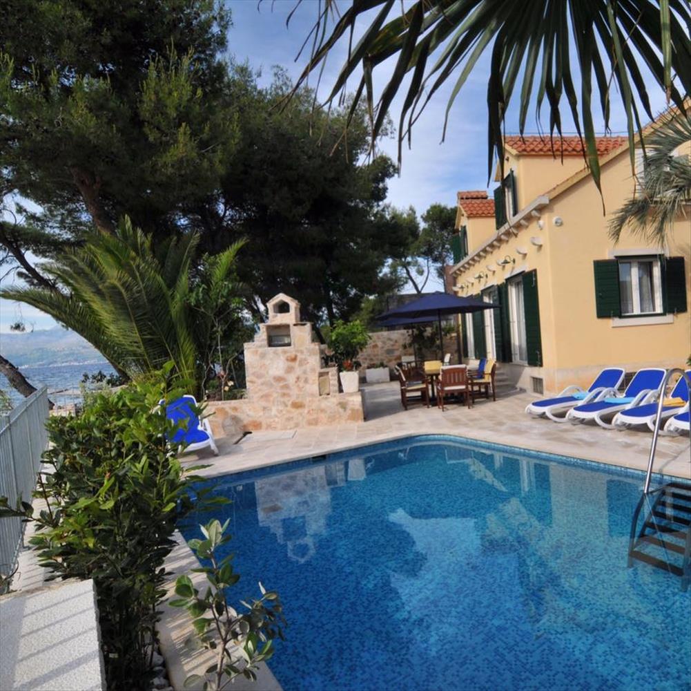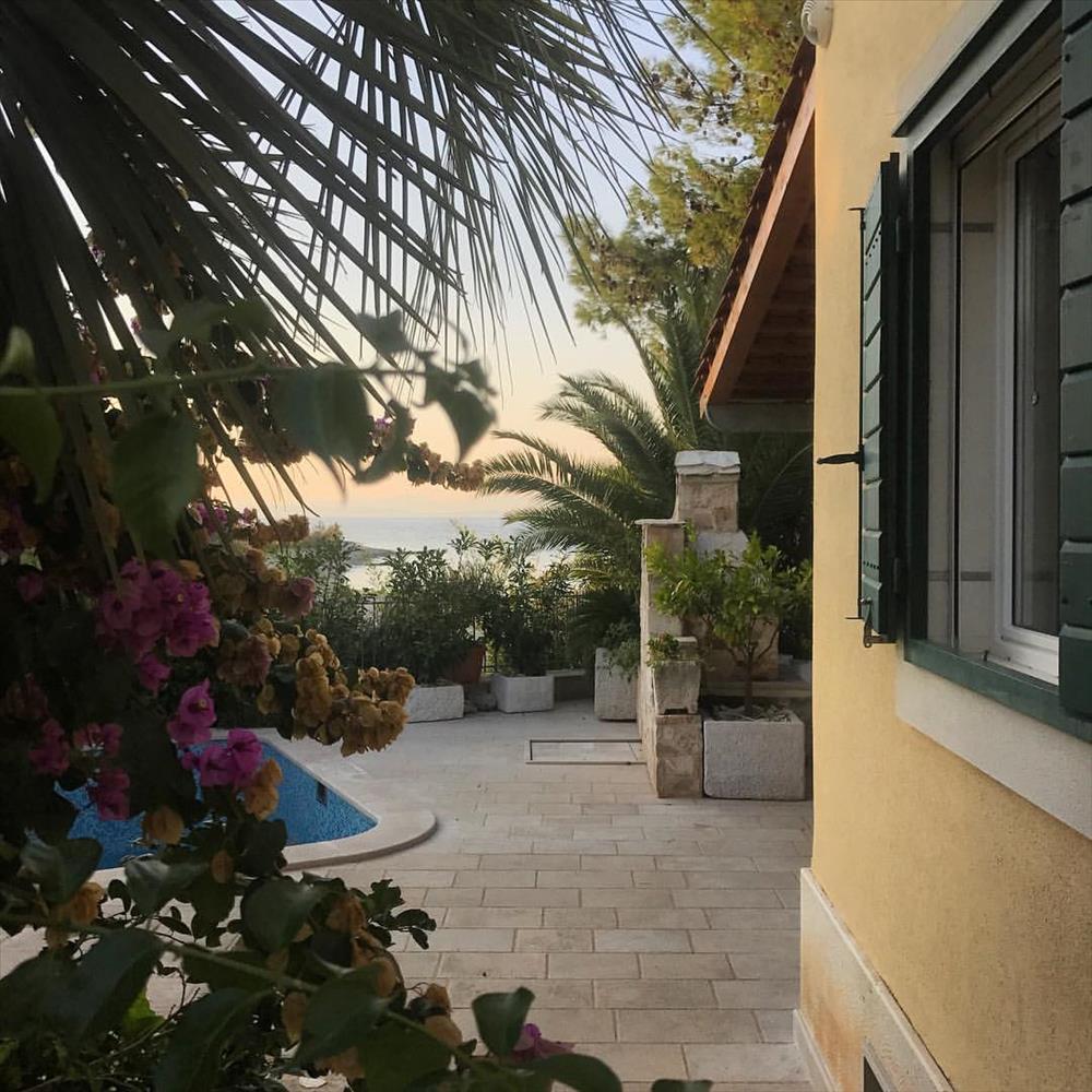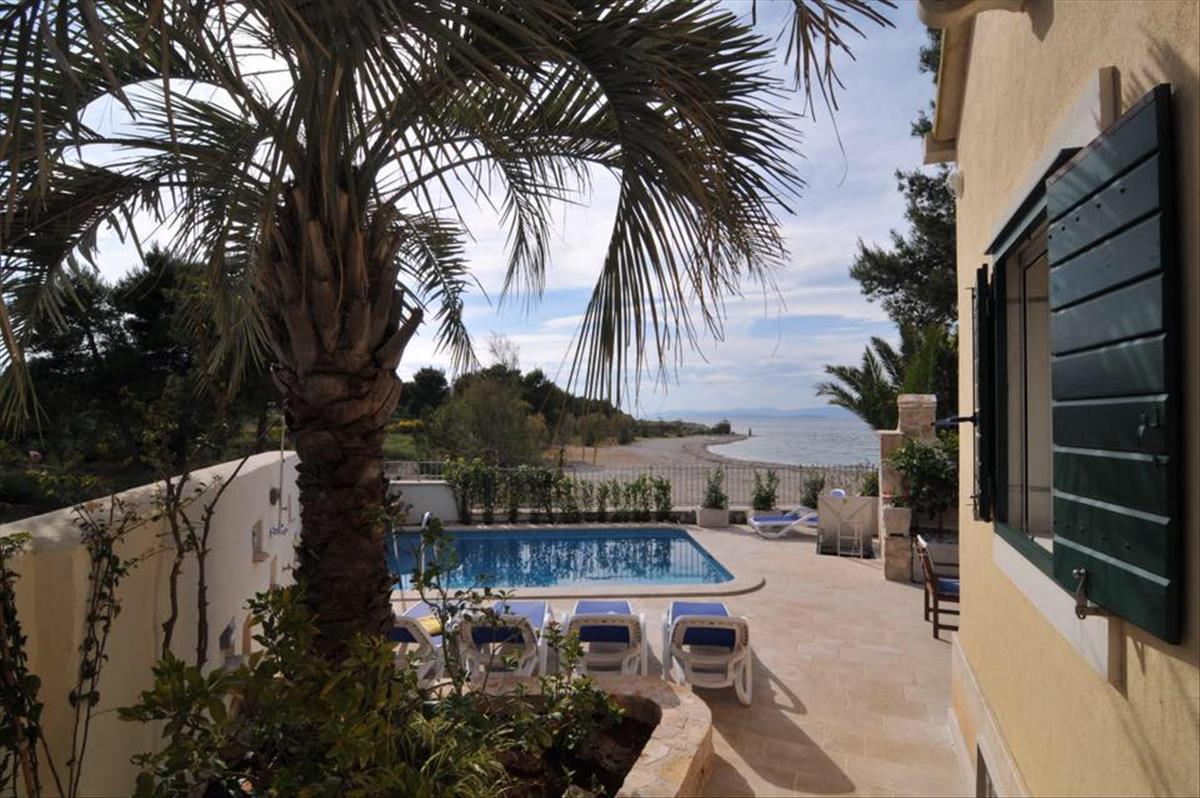 Ideálisan romantikus mediterrán villa úszómedencével, közvetlenül a tenger partján, egy gyönyörű strand mellett, Supetar területén, Brac szigetén, hajókikötővel.