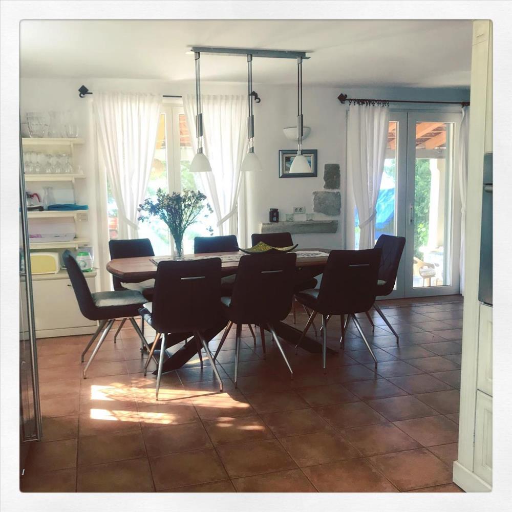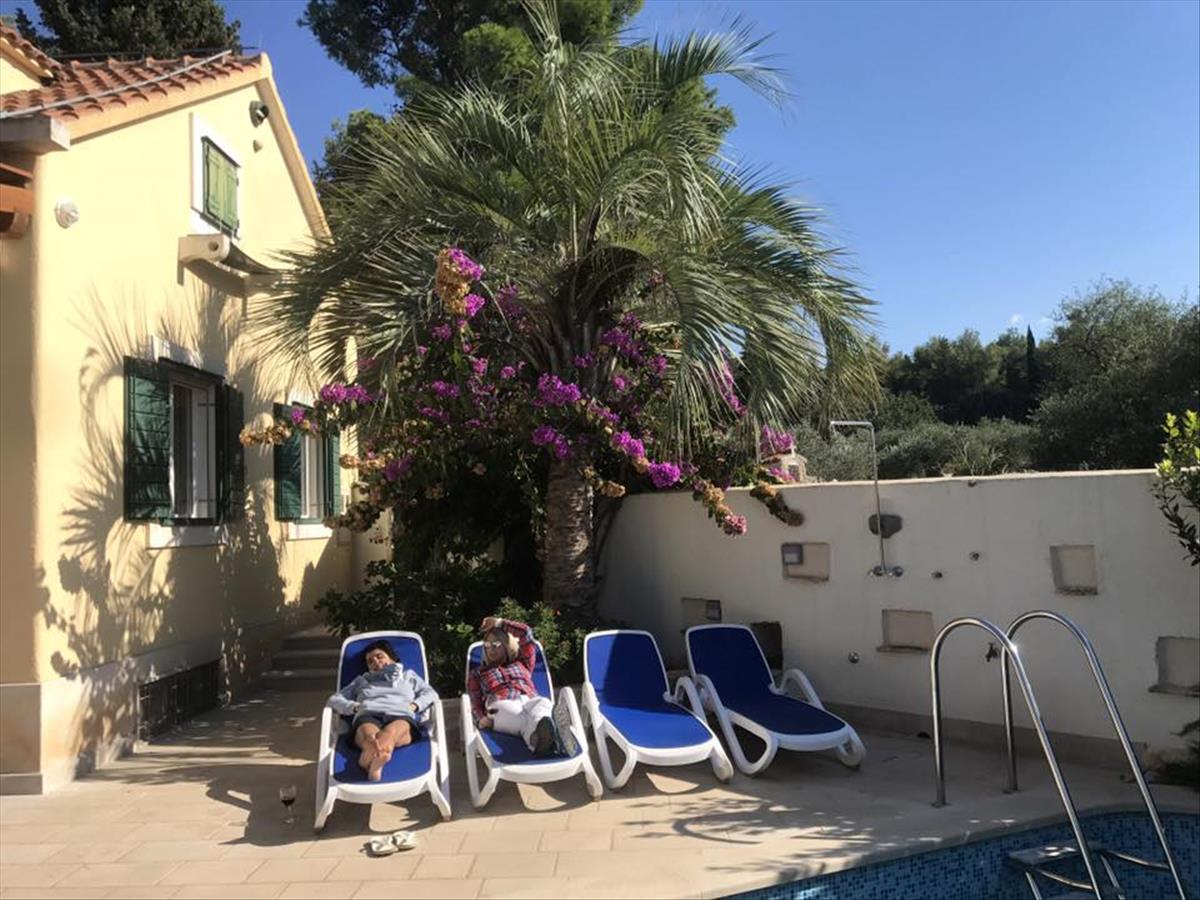 A villa földszintjén egy modern nyitott tér található, melyben teljesen felszerelt konyha kenyérsütővel, étkező, valamint egyedi szalonhelyiség található rusztikus kőkandallóval. Ez az egész tér tele van gondosan megtervezett belső térrel, amely a modern és a hagyományos mediterrán sikeres ötvözésének eredménye, és a gyönyörű kertbe és a tengerre néző teraszra vezető nagy "Provence-i stílusú" ajtók további értéket és egyediséget adnak a hely. a földszinten található még egy vendég wc és egy modern fürdőszoba jacuzzi káddal. a villa első emeletén két kétágyas hálószoba található franciaággyal és saját fürdőszobával. a hálószobák nagy ablakaiból egyedülálló kilátás nyílik a tengerre. a villa egy védett árú öbölben található, közvetlen hozzáféréssel a tengerhez, és lenyűgöző kilátást nyújt a tengerre és a naplementére.