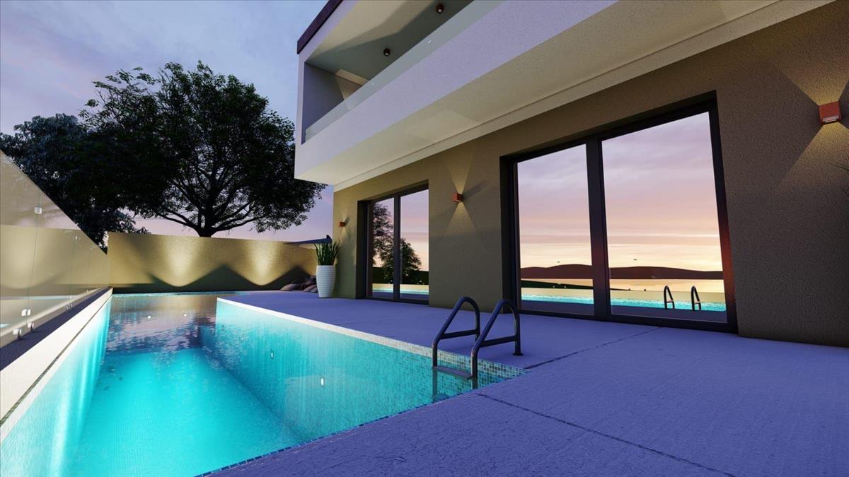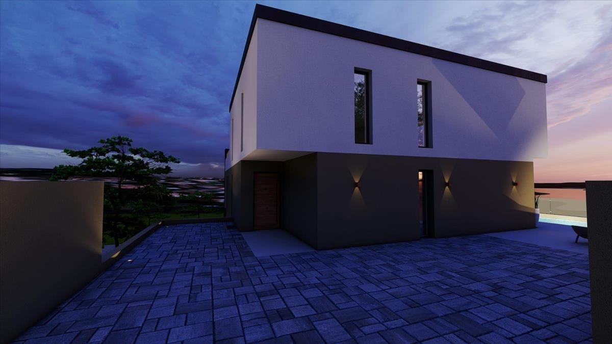 Új építésű villa Medulinban, mindössze 200 méterre a tengertől, kilátással a tengerre! Szokatlan koncepció, mert a villa 3 lakóegységként is funkcionálhat. 3 Szintes: pince, földszint, első emelet. a villa összterülete 300 m2. Az alagsorban egy 40 m2-es garzonlakás található, a fennmaradó 60 m2-t tavernának, edzőteremnek, játékteremnek stb. Használhatják a leendő tulajdonosok. a földszinten egy másik, 40 m2-es garzonlakás található, a fennmaradó részt pedig két hálószoba foglal el, saját fürdőszobával, melyek az emelethez kapcsolódnak és egy külön lakóegységet alkotnak. Az első és az utolsó emeleten található egy nappali konyhával és étkezővel, melyből déli és keleti oldalról ki lehet jutni a teraszra, és ahonnan kilátás nyílik a tengerre, valamint egy kisebb szoba és egy wc is található. Első emelet. a 304 nm-es kertben 25 m2-es medence került elhelyezésre. a villa 7 db klímával, elektromos padlófűtéssel, elektromos redőnnyel, szúnyoghálóval, kívül antracit pvc ácsmunkával felszerelt. a leendő tulajdonosok átvehetik a villát jelenlegi állapotában, vagy megegyezés szerint a teljesen kész villát. Ref: RE-U-22536