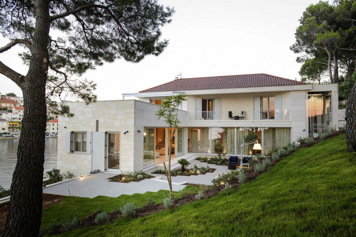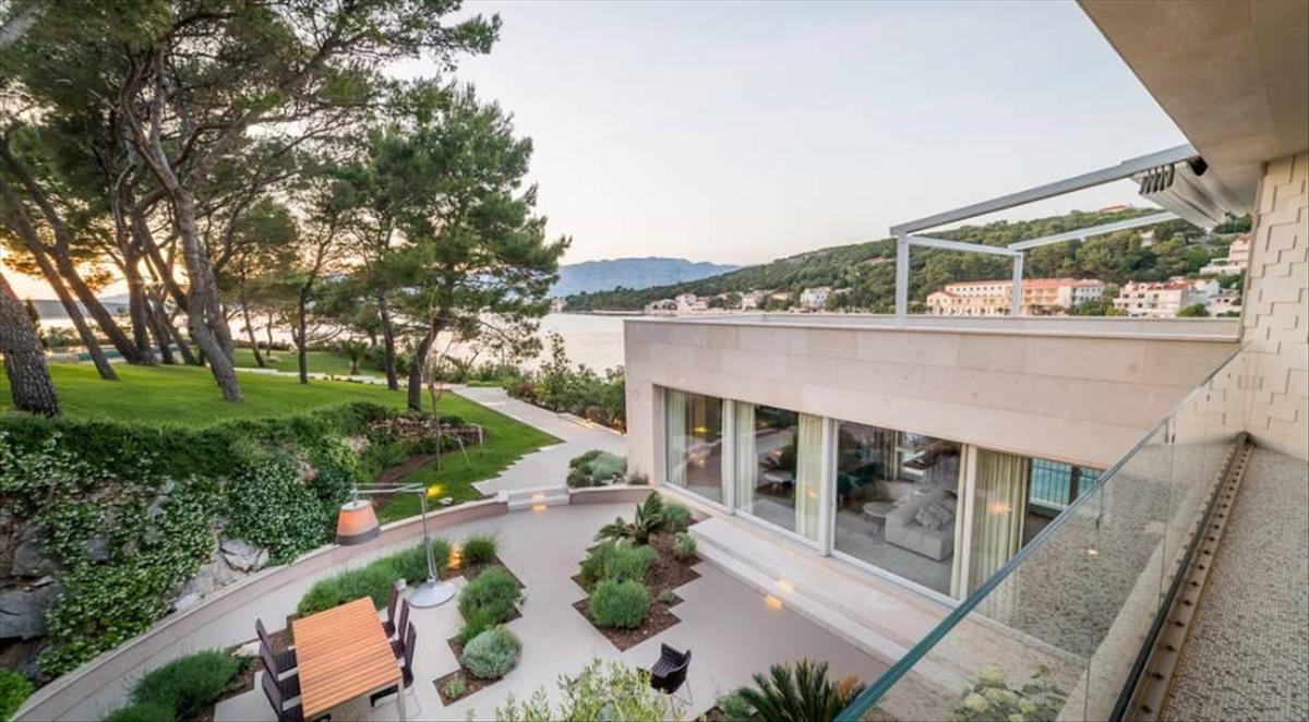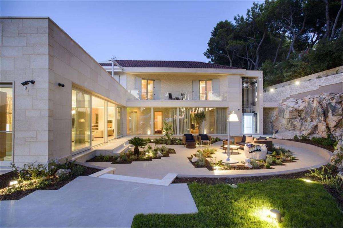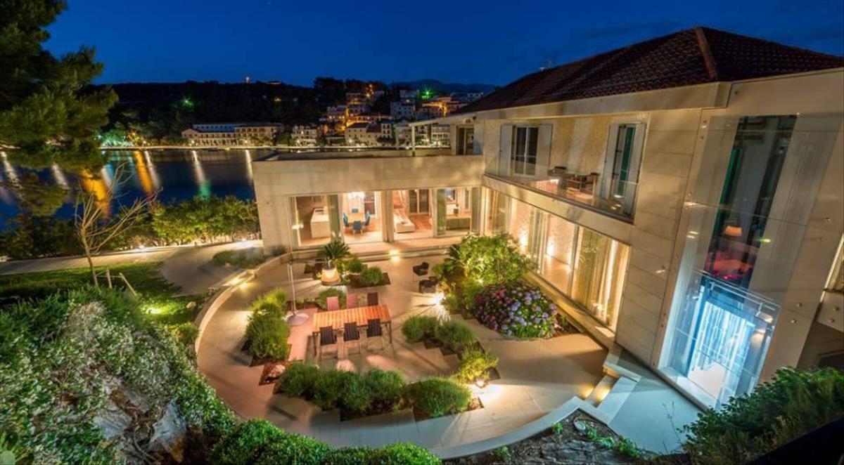 Díjnyertes vízparti villa medencével, 7-10 perces sétára egy kis mediterrán falutól, ahol éttermek, bárok és boltok találhatók – csodálatosan elszigetelt, privát helyszín, rövid sétára minden kényelmi szolgáltatástól. Békés környezet, nagyon szép tengeri panoráma, gyönyörű esti kilátás a régi halászfalu felé. Meglepetés teraszos kertje a tengerhez lejt. a villa helye részben a sziklába van vágva. a modern dizájn a pseudo-hagyományos megjelenéssel van kombinálva. a teljes terület 407 m2. a telek területe 2600 m2.