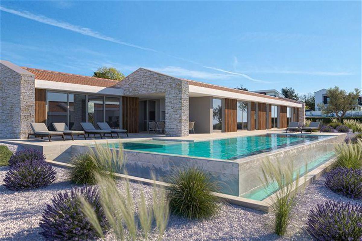 A villák egy csendes környéken találhatók, 11 km-re a tengertől. a villákat körülvevő és díszítő terület természete és békéje nem hagyja közömbösen a látogatókat, beleértve az egyik leghíresebb gyalogos és kerékpáros útvonalat, amely ezen a területen húzódik. Így a természet és a béke szerelmesei a meleg isztriai nap alatt élvezhetik a modern élet kényelmét és minőségét. Ezeknek a csodálatos villáknak a dizájnja a nagy "nyitott terekkel" rendelkező villák egyszerűségére és könnyű kezelhetőségére összpontosít, valamint a külső és belső terek közötti elegáns és funkcionális kommunikációra, amelyet természetes és meleg, modern elemekkel dúsítottak, hogy egy érzést keltsenek. Igazi otthon. Ezeket a stílusos villákat úgy tervezték, hogy a figyelem középpontjában egy nagyobb "nyitott tér" álljon nappalival, modern és felszerelt konyhával étkezővel, amelyet egy nagy üvegfal díszít, amelyen keresztül közvetlenül elérhető a kültéri terasz. És az úszómedence kiterjed. Ugyanez a tér napfényben fürdik, ami még melegebbé és légiesebbé tette a teret. Ezután három különálló "fürdőszobás" hálószoba (saját fürdőszobákkal), gyors és egyszerű kommunikáció a külső térrel, azaz a medencével, a nyári konyhával és a zöldövezettel. Ha mindehhez hozzávesszük a szaunának szánt teret, valamint a minőségi és jelzett bútorokkal ellátott belső kialakítást, akkor elmondhatjuk, hogy a történet azt a formát ölti, amit a neves befektető minden egyes fellépésével szeretne elérni. a villa férfi jellemzői: - 165, 81m2 lakóterület - 1065 m2 telek - feszített víztükrű medence 50, 60 m2 - 4 parkolóhely, ebből 2 fedett - a kivitelezés során az egyik legmodernebb technikát alkalmazzuk, jó minőségű anyaggal és végső teljesítménnyel - okosotthon rendszer; intelligens otthonkezelés mobileszközön lévő alkalmazásokon keresztül - fotovoltaikus erőművek