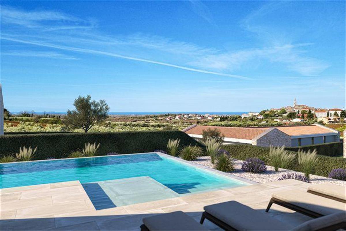 Luxus, modern villa Višnjanban, Porecben, egy új társasházban, amely 4 stílusos, tengerre néző villából áll!