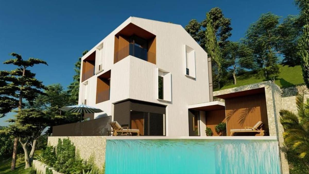 Ultramodern villa Mošćenička Dragában, úszómedencével és tengerre néző kilátással, mindössze 500 méterre a tengertől!Egyedülálló lehetőséget kínálunk, hogy egy gyönyörű dizájnvilla tulajdonosává váljon az Abbáziai Riviérán, közel a tengerhez, két úszómedencével, wellness-részleggel és panorámás kilátással.