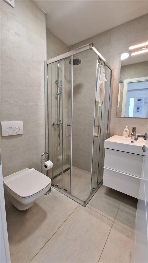 A 153, 45 négyzetméter nettó alapterületű r2 Villa az első és a második emeletet is átfogja, saját hozzáféréssel a tetőteraszhoz. Belül négy tágas hálószoba és három elegáns fürdőszoba található, amelyek tökéletes arányban vegyítik a teret és a luxust. Az első emeleten a hálószoba, a fürdőszoba, a nagy nappali és a modern konyha erkélyre nyílik – ez a hely, ahol elfogyaszthatja a reggeli kávét, belélegezve a friss tengeri levegőt.