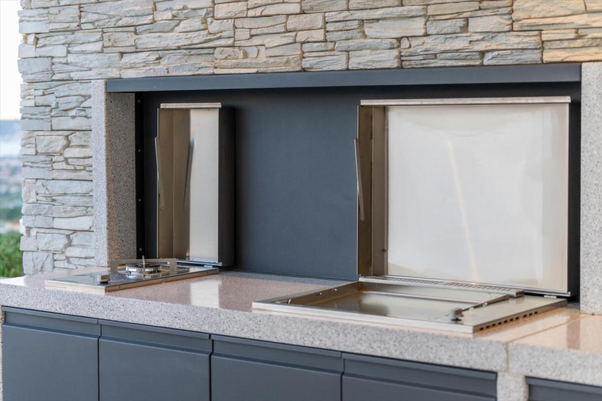 A villa a legújabb technikai megoldásokkal van felszerelve – hőszivattyús rendszer, padlófűtés és víz-levegő klímaberendezés, a biztonság és kényelem érdekében videómegfigyeléssel és nagy sebességű internettel.