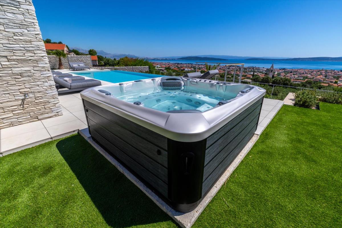 A Split és Trogir között található, 2 km-re a tengertől, csendes és privát környezetben, ez a rendkívüli új építésű villa zavartalan panorámás kilátást kínál a tengerre és a szigetekre.