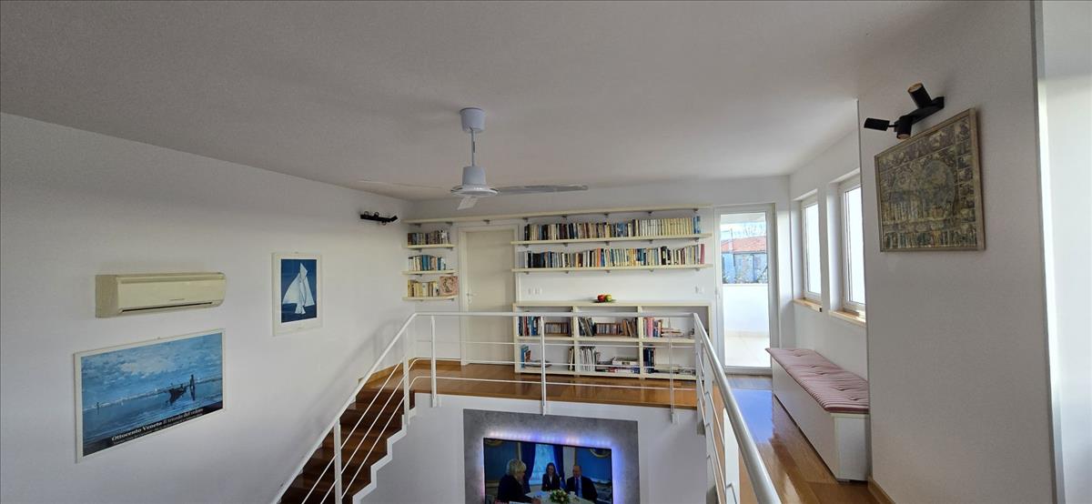 Egy csendes helyszínen, mindössze két kilométerre a tengertől, a híres Poreč környékén egy lenyűgöző tervezői villa eladó. Két szinten, körülbelül 344 m² bruttó területtel, ez az egyedi ingatlan egy tenger, hajók és tengeri témák iránt szenvedélyes építész tervei alapján készült, és olyan jellegzetes részleteket tartalmaz, amelyek valóban különlegessé teszik.