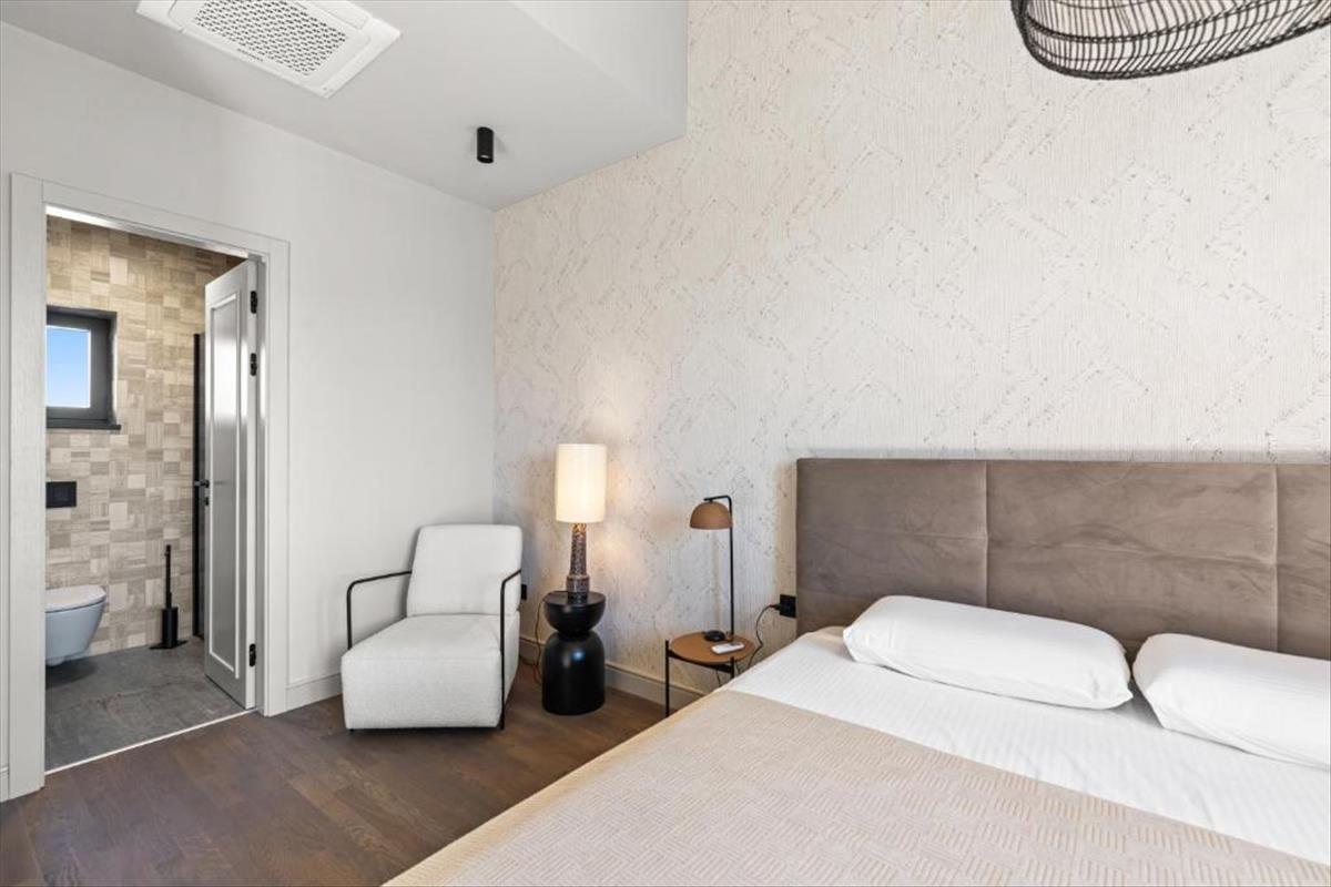 Ez a villa valóban figyelemre méltó, mivel a kivitelezés és a berendezés során nagy gondot fordítottak a magas minőségű anyagok és a kifinomult befejezési technikák használatára. Az ingatlan teljesen bútorozottan kerül értékesítésre. a nappaliban található kandallón kívül padlófűtés van telepítve minden helyiségben, kivéve a hálószobákat. Minden helyiség légkondicionált, rejtett mennyezeti légkondicionáló egységekkel. a hálószobákban magas minőségű parketta található, míg a villa többi részén prémium kerámia burkolólapokat használnak vonzó dizájnnal. a homlokzat 10 cm-es hőszigeteléssel van szigetelve, és magas minőségű alumínium nyílászárók, szúnyoghálókkal és elektromos redőnyökkel vannak felszerelve. a tulajdonjog dokumentációja tiszta, a tulajdonos egy cég, és az ingatlan tehermentes. Az árajánlat jogi személyekre vonatkozik, míg a magánvásárlók egy további összeget fizetnek, amely az ÁFA-nak felel meg.