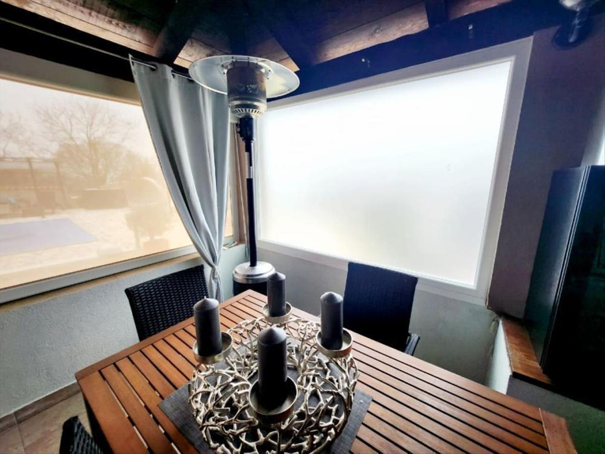 A villa előtt van egy fedett terasz ciszternával és egy nyári konyha grillezővel és jakuzzival.