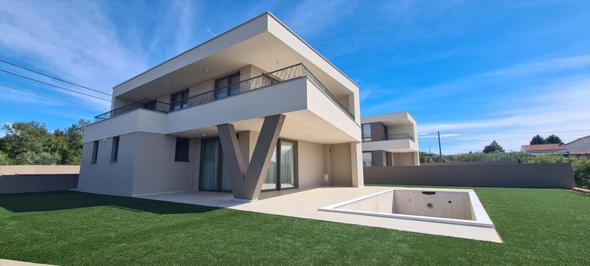 Modern villa 212, 99 m²-en Brzacban, Krk szigetén, 565 m²-es telken, körülbelül 1 km-re a tengertől. Az ingatlan két szinten helyezkedik el, és csendes helyszínt kínál lenyűgöző kilátással.