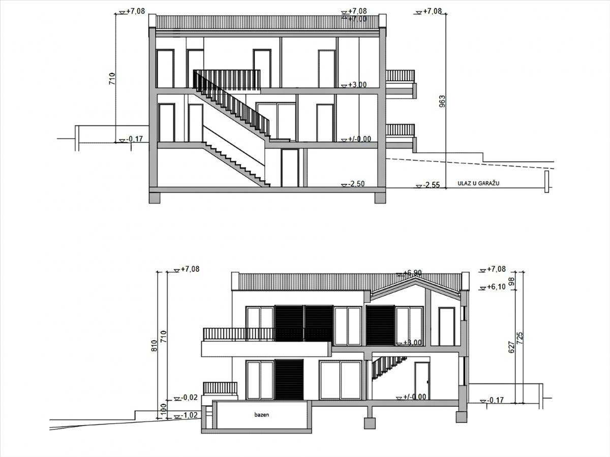 A 377 m²-es épített területével és 974 m²-es telkével ez a prémium ingatlan Horvátországban autentikus élményt kínál egy kis istriai faluból, intim környezetet biztosítva, teljes menekülést nyújtva a városi nyüzsgés és zaj elől, miközben kényelmesen közel marad Istria dinamikus városaihoz, amelyek számos szolgáltatást kínálnak. a kényelmes villa időtlen báját sugároz építészetén keresztül, részben kővel burkolva, amely zökkenőmentesen illeszkedik a településhez és a környező tájhoz, biztosítva a hosszú távú elégedettséget és a magas színvonalú életet a kiváló építési standardok mellett. Az épület három szinten elhelyezkedő, egyetlen lakóegységként van megtervezve, mesterien ötvözi az eleganciát, a funkcionalitást és a kényelmet. a pince garázst, egy sokoldalú, társalgásra alkalmas helyiséget, biliárd asztalt, edzőtermet vagy wellness zónát, valamint műszaki helyiségeket és a medence gépészeti helyiségét tartalmazza. a földszinten konyha étkezővel, nappali, egy saját fürdőszobás hálószoba és egy vendég wc található. Az emelet egy előszobából, tárolóból és három hálószobából áll, mindegyik saját fürdőszobával, amelyek mindegyike erkélyhez vezet.
