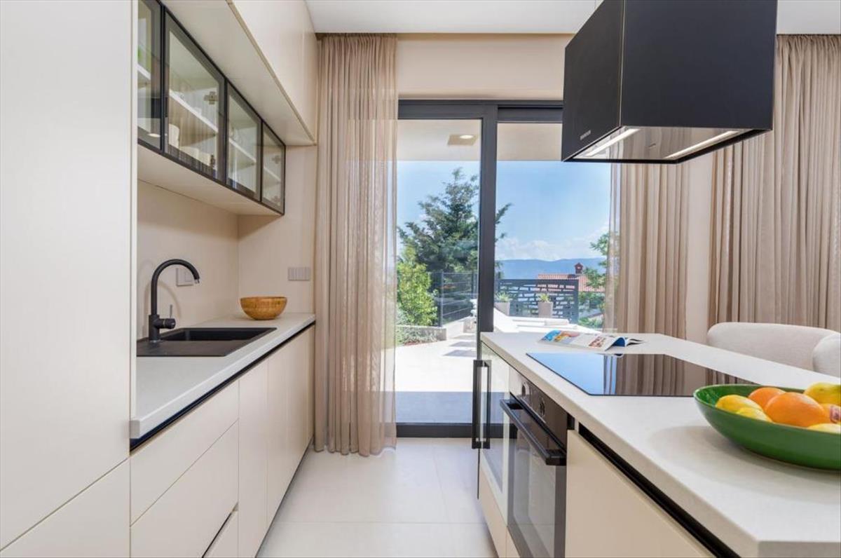 Rabac és Labin közelében, egy bájos tengerparti településen egy új épület várja Önt, panorámás kilátással a tengerre. a csendes környéken elhelyezkedő ingatlan Učkától Rijeka városáig húzódik, a Kvarner-szigetekre és a csillogó Adriai-tengerre kiterjedő kilátással büszkélkedhet. Elhelyezkedése elbűvölő és páratlan látványt nyújt. a modern kialakítás jellemzi ezt a lakást, amely kiváló minőségű anyagok felhasználásával épült, a legmagasabb lakóépületi szabványok betartásával. a tervezés a lépcsőzetes terepen alapul, amely részben beágyazza a szerkezetet a tájba. Tájolása megragadja a Cerulean-tenger és a magával ragadó környezet látványát, ügyesen egyesíti a határokat a szabadban és a benti között.