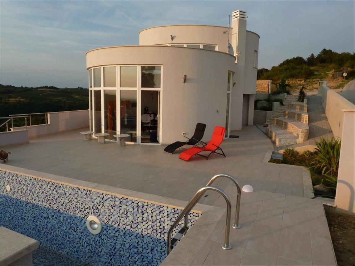 Rendkívüli kialakítású, panorámás villa a Kozlovic borokért rajongó Momjan-Buje környékén!
