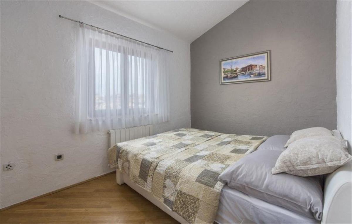 A felső szinten előszoba, három hálószoba, két nagyobb hálószoba és egy kisebb gyerekszoba és egy nagy fürdőszoba található. Minden szobában van tv csatlakozás és internet. a folyosón keresztül jutunk ki az erkélyre, ahonnan gyönyörű kilátás nyílik a tengerre és az egész falura, ahol elfogyaszthatják a reggeli kávét.