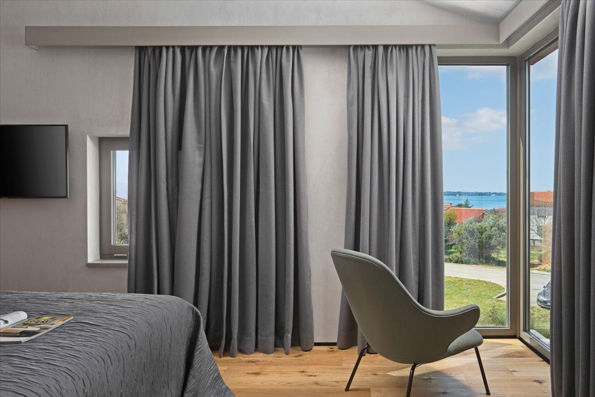 Fazanában eladó tervezői villa ritka lehetőséget kínál, hogy egy luxus ingatlant birtokoljon mindössze 800 méterre a tengertől.A 207 négyzetméteres összlakóterülettel és egy tágas 1200 négyzetméteres telekkel ez a villa zökkenőmentesen ötvözi a modern dizájnt, a funkcionalitást és a természeti szépséget. Egy csendes környéken, természet, családi otthonok és nyaralók között helyezkedik el, tökéletes egyensúlyt teremt a nyugodt tengerparti élet és a városi kényelmi szolgáltatásokhoz való könnyű hozzáférés között. Elhelyezkedése biztosítja a magánéletet és a nyugalmat, miközben ideálisan van elhelyezve az egész éves lakhatásra.