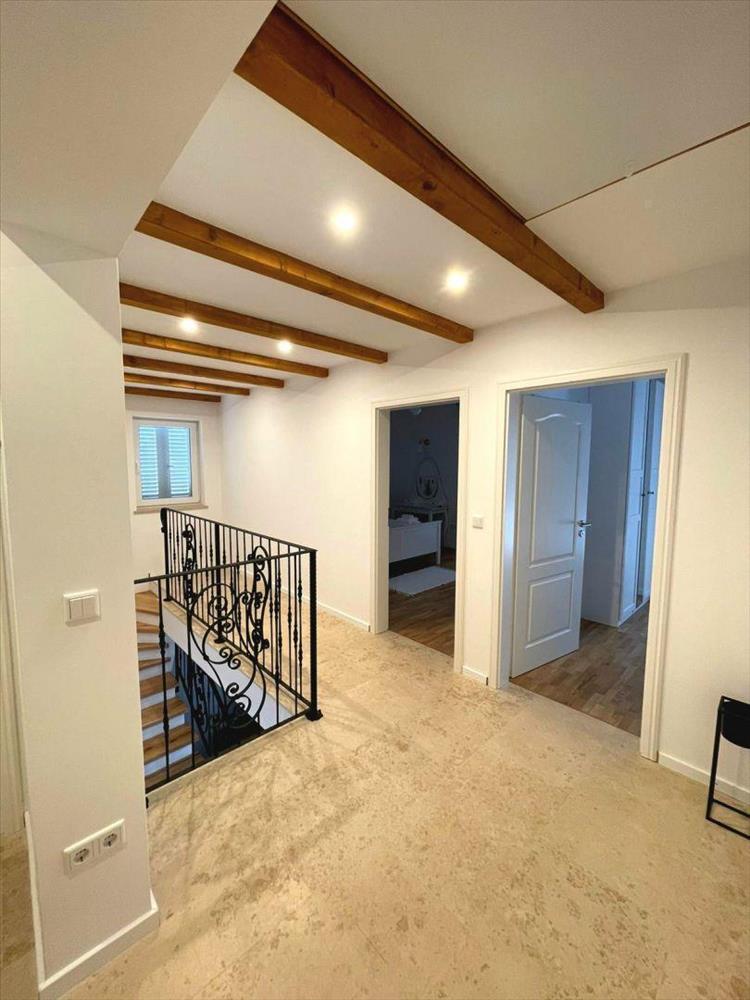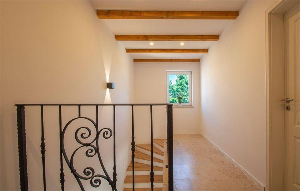 A faburkolatú belső lépcsőn keresztül megközelíthető felső emeleten további négy hálószoba található. Ezek közül kettőnek közös terasza van, ahonnan lenyűgöző kilátás nyílik a tengerre, a Brijuni-szigetekre és a naplementére. Az egyik hálószobához saját fürdőszoba tartozik, míg a többihez egy további fürdőszoba tartozik.