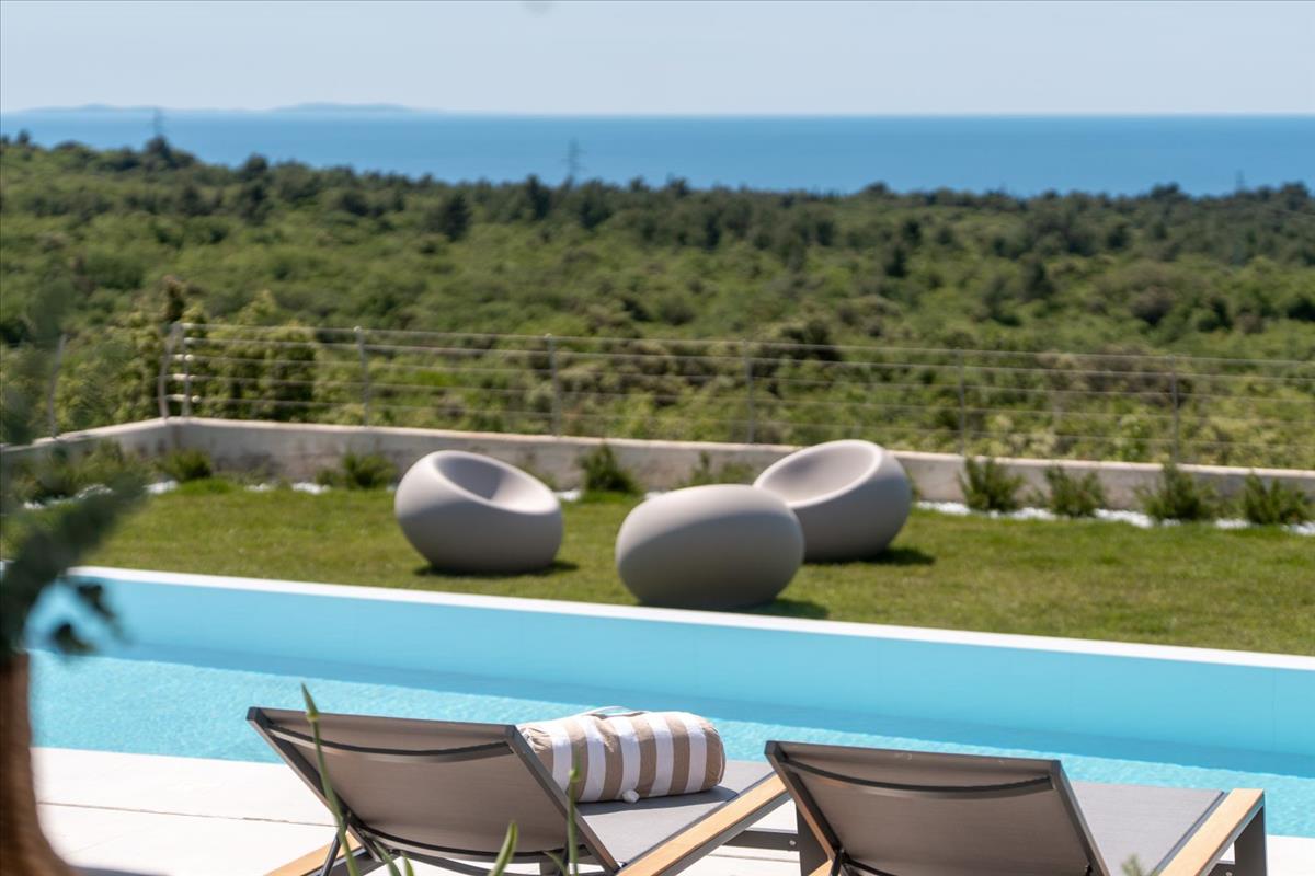 Az emeleten négy gyönyörűen berendezett hálószoba található, mindegyik saját fürdőszobával. a hálószobák közül három egy csodálatos, 17 méter hosszú erkélyre nyílik, amely lenyűgöző tengerre néző kilátást kínál.