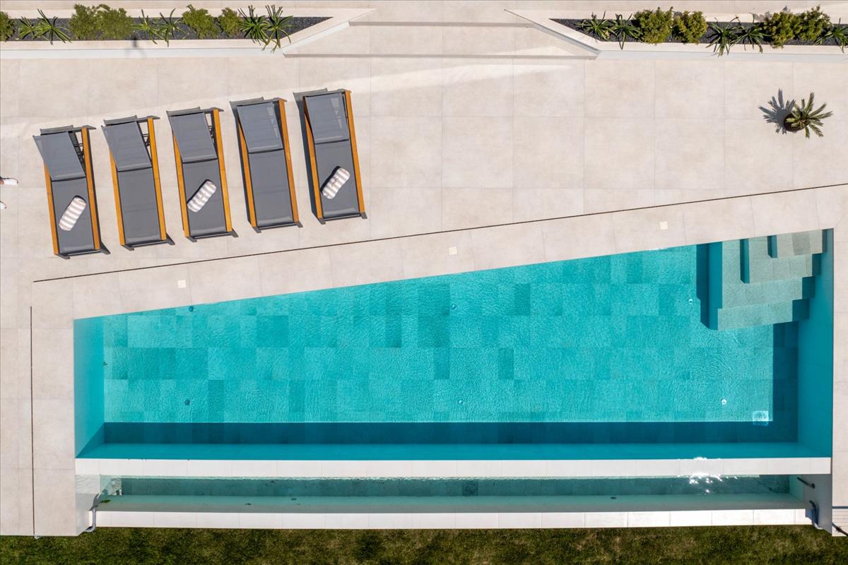 Külső területen egy lenyűgöző, 13 méter hosszú átlós végtelen medence hívogat, hogy pihenjen és élvezze a panorámás tájat. a medence alatt egy hagyományos vendéglő biztosít egyedi helyet összejövetelekhez és szórakozáshoz.