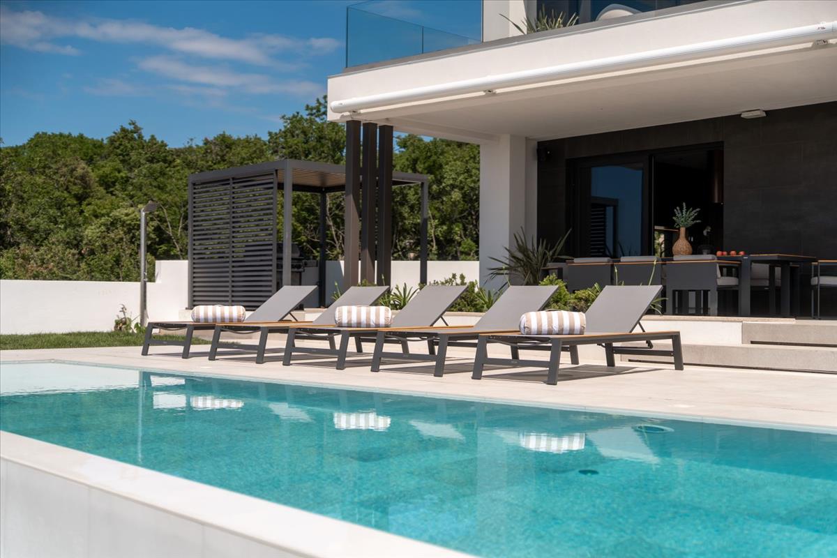 Élvezze a modern luxus életet ebben a lenyűgöző új villában, lélegzetelállító tengerre néző kilátással, mindössze 1500 méterre a csillogó Adriai parttól.A varázslatos Isztria délkeleti partján elhelyezkedő villa zöldellő dombokkal öleli körül a tengert, ez a helyszín a természeti szépség és a gazdag örökség egyedülálló keveréke. a közelben található Labin és Rabac bájos városai harmonikus kontrasztot alkotnak—Labin, amely egy 320 méter magas dombon helyezkedik el, tele van történelemmel és kultúrával, míg Rabac, mindössze öt kilométerre, híres tiszta fehér kavicsos strandjairól. Együtt egy vibráló környezetet teremtenek, ahol a hagyomány találkozik a modernséggel, és a művészet a szabadidővel.
