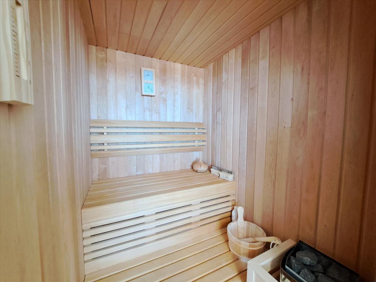Egy hálószoba, szauna és vendég WC.