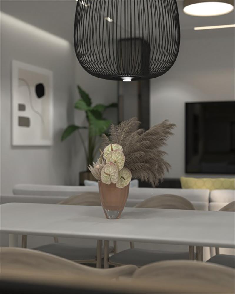 A villa három szinten terül el, 160, 61 m² lakóterületet biztosít egy 352 m²-es telken. a földszinten egy tágas bejárati előtér, két tárolóhelyiség, egy fürdőszoba, egy külön vendég wc és egy nyitott konyha étkezővel és nappalival található. a nappali egy nagy teraszra nyílik, amely saját medencével és lélegzetelállító tengeri kilátással rendelkezik, tökéletes a mediterrán életstílus élvezetéhez.