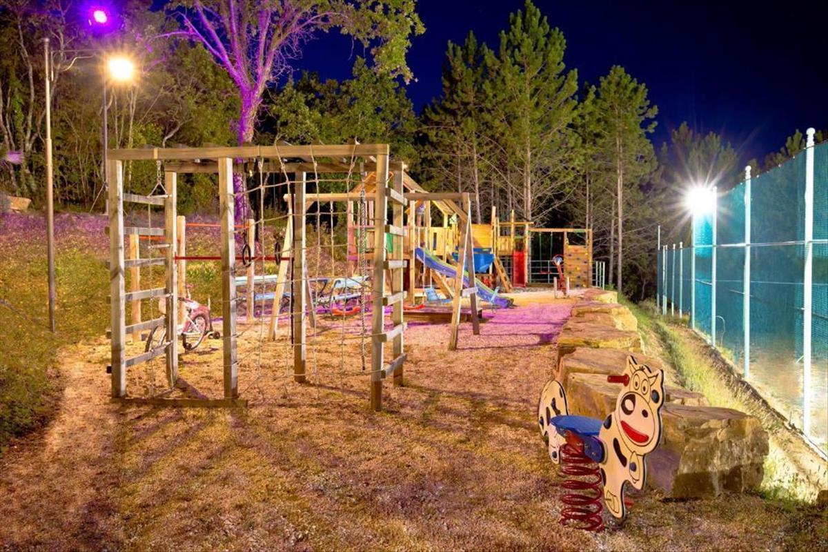 Gyermekjátszótér és egy hagyományos kőgrill terület.