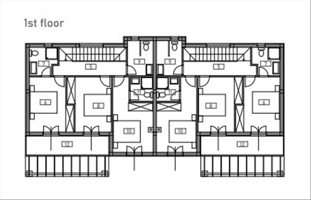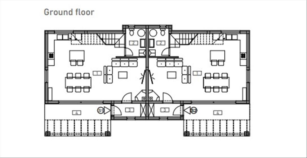 A ház minden fele saját medencével büszkélkedhet, amely tökéletes menedéket biztosít a pihenéshez és élvezethez a meleg nyári napokon. a medence mellett minden egységhez két parkolóhely tartozik. Építés és anyagok