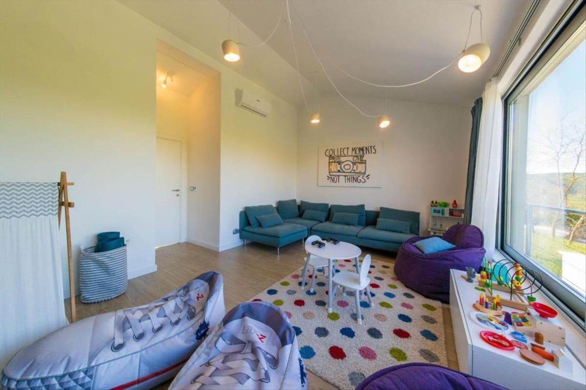 A villában a fent említett előnyökön kívül játszószoba is található, így a család minden tagjának van egy sarok.