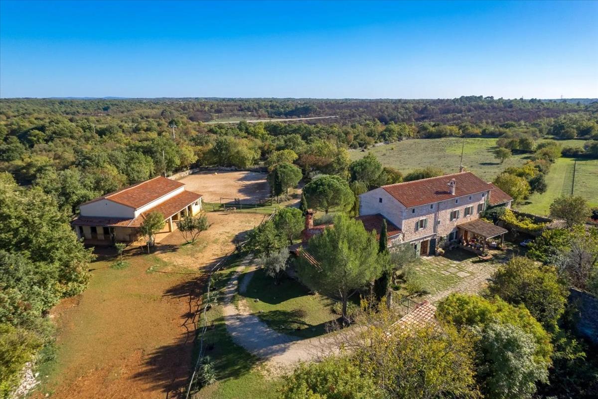 A festői Svetvinčenat környezetében, egy bájos reneszánsz városban, amely 310 méter magasan fekszik a tengerszint felett Dél-Közép-Istriában, ez a kiterjedt istriai birtok ritka lehetőséget kínál egy egyedi vidéki ingatlan megszerzésére, fejlesztési potenciállal. Svetvinčenat híres Horvátország egyik legszebb reneszánsz teréről és a kivételesen megőrzött középkori Morosini-Grimani várról, így rendkívül vonzó úti céllá vált, amely a természeti szépségéről, kulturális örökségéről, eseményeiről és eno-gasztronómiai turizmusáról ismert. a város közelében, csendes vidéki területen található birtok körülbelül 3 hektáros réteket és legelőket foglal magában, egyesítve egyetlen ingatlanná. a területen egy felújított kőház, egy istálló, egy föld feletti medence és egy további kőrom található, összesen körülbelül 320 m² beépített területtel. Az ingatlan az autentikus istriai karaktert modern funkcionalitással ötvözi, biztosítva a magánéletet és a hosszú távú értéket a növekvő istriai ingatlanpiacon. Az eredeti kőházat gondosan felújították, megőrizve építészeti örökségét, miközben kortárs tervezési elemeket is bevezettek. Az eredmény egy időtlen kombinációja a hagyományos istriai kőépítészetnek és a modern életstílusnak. a belső tér három szinten terül el, és teljesen alkalmazkodott a kényelmes, egész éves lakhatáshoz, meleg fa elemekkel, természetes kő részletekkel és rusztikus stílusú bútorokkal, amelyek meghívó és elegáns légkört teremtenek. a földszinten egy tágas nappali található galériával, egy étkező, amely a konyhához kapcsolódik, egy otthoni iroda, egy vendég wc és egy tárolóhelyiség. Az első emeleten két hálószoba és egy fürdőszoba található, míg a padlástér további teret kínál, amely a új tulajdonos preferenciái szerint alakítható, legyen szó extra hálószobákról, stúdióról vagy pihenőhelyről. Az egész birtok teljesen kerített és gondosan karbantartott, biztosítva a magánéletet és a biztonságot.