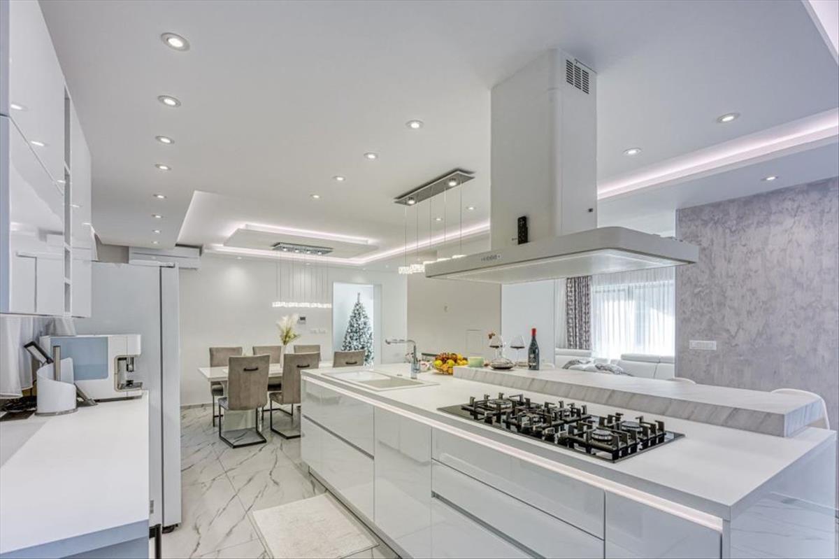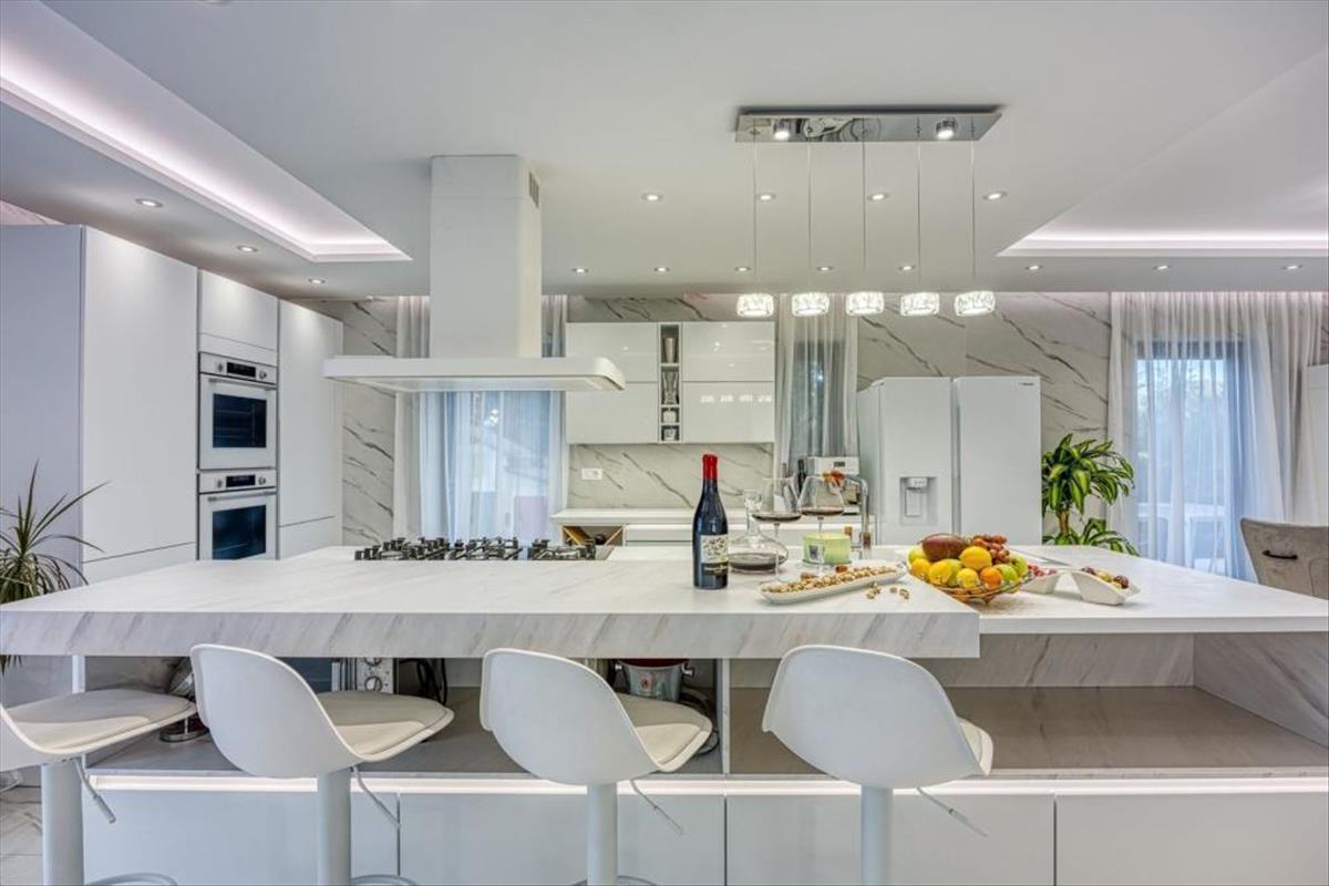 A villába belépve az előcsarnokban találja magát az ember, amely elhatárolja a privát teret a villa lakóterétől. a villa nappalija „nyitott térként” van kialakítva, ahol az étkező egy modern, teljesen felszerelt konyhával, egy neves világgyártó csúcsminőségű gépeivel van felszerelve. Az alapfelszereltségű készülékek mellett egy személyre szabott minibár is diszkréten fészkelődik a konyhában, amely kedvenc italait optimális hőmérsékleten tartja. a konyhában egy professzionális gáztűzhely is található, kiváló minőségű páraelszívóval, amely egy konyhaszigeten található, ideális családi vagy baráti összejövetelekhez.