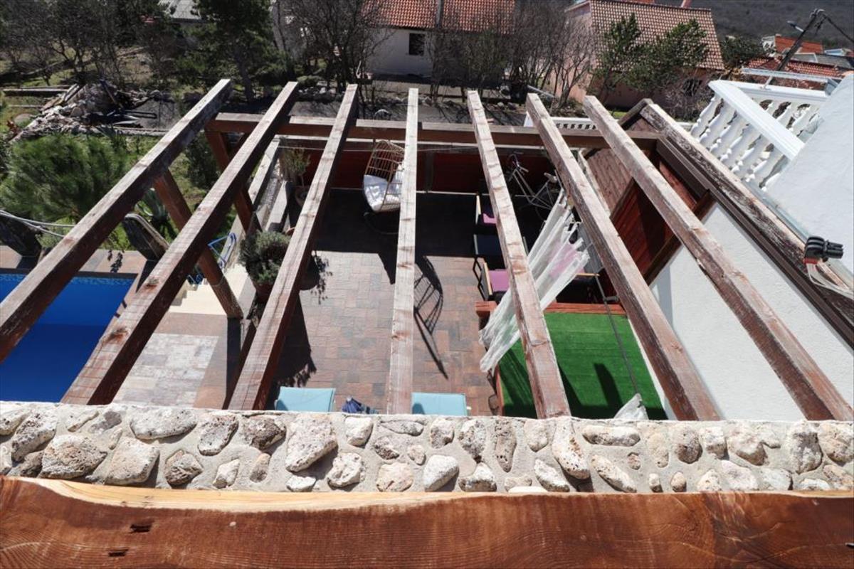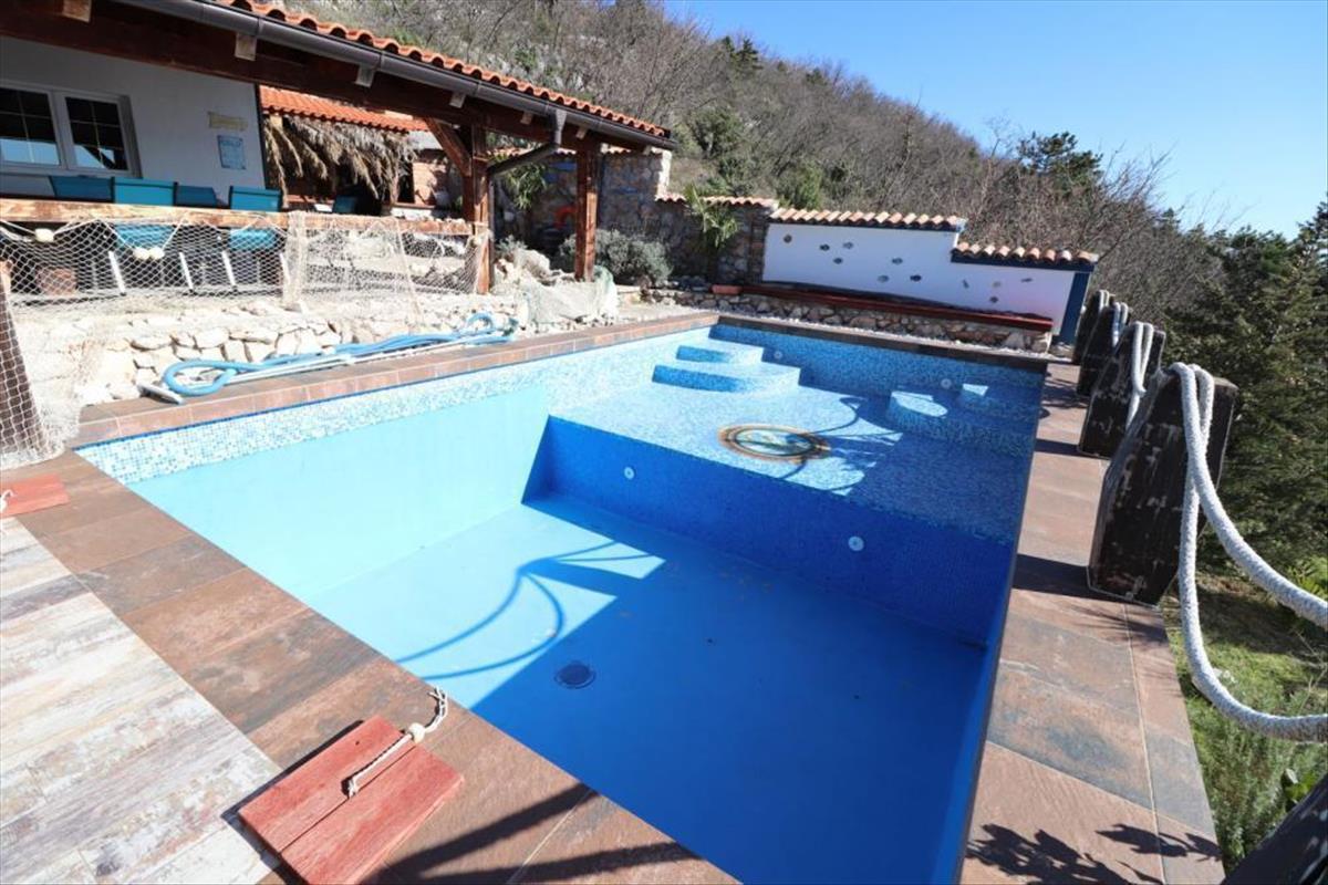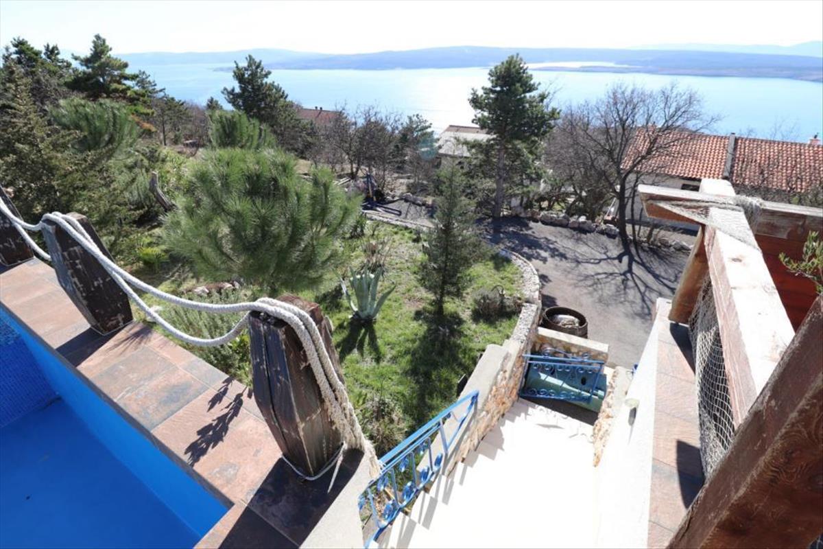 A földszinten található egy nappali konyhával, egy hálószoba, fürdőszoba, előszoba, lépcsőház és egy fedett terasz. Az emeleten van egy "mester" hálószoba saját fürdőszobával és egy hatalmas fedett terasz biliárddal és gyönyörű kilátással Krk szigetére és a tengerre.