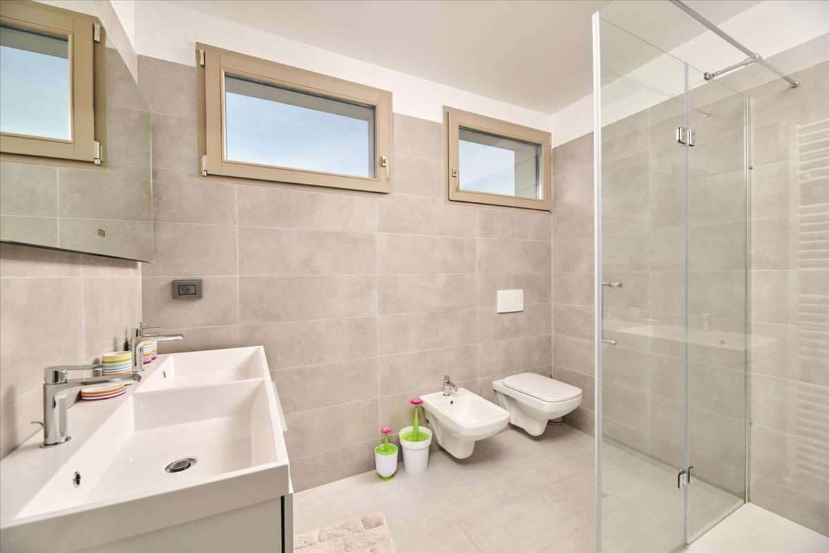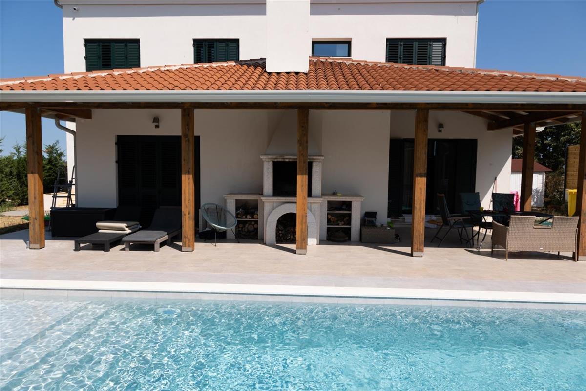 Tökéletesen elhelyezkedik egy csendes, természet által körülvett zónában, mindössze 2300 méterre a parttól, ez a 2023-as új építésű ingatlan a horvátországi ingatlanpiac prémium szegmensét képviseli. a 710 m²-es gondosan parkosított telken összesen 373 m²-es lakóterülettel rendelkezik, és olyan igényes vásárlók számára készült, akik kifinomult családi otthont vagy magas hozamú luxusbefektetést keresnek a virágzó isztriai ingatlanpiacon. Ennek a különálló villának az építészeti narratívája három gondosan megtervezett szinten bontakozik ki, kezdve egy világos, fényárban úszó földszinttel, amely a ház szíveként szolgál. Egy elegáns előcsarnok vezet egy hatalmas, nyitott koncepciójú élettérbe, amely egy prémium modern konyhát, egy hivatalos étkezőt és egy lenyűgöző nappalit tartalmaz, amelyet egy klasszikus fatüzelésű kályha tesz hangulatossá a téli hónapokban. Nagyformátumú üvegfalak oldják fel a határt a belső tér és a privát mediterrán kert között, biztosítva a zökkenőmentes átjárást a kültéri teraszokra. Ez a szint tartalmaz egy sokoldalú hálószobát, amelyet jelenleg dolgozószobaként használnak, egy vendégfürdőt és alapvető tárolóhelyet. a felső szintek a privát pihenésre és panorámás kilátásokra vannak fenntartva. Az első emeleten négy tágas hálószoba található, köztük egy pazar fő hálószoba saját fürdőszobával és külön bejáratú gardróbbal. a végső szintre való feljutás egy majdnem befejezett padlástérre vezet - egy sokoldalú, 45 m²-es zónára, amely ideális másodlagos fő hálószobának, wellness spa-nak vagy penthouse irodának. Ez a csúcs szint egy megismételhetetlen panorámás tengerre néző kilátást kínál, amely megragadja az Umagi Riviéra lényegét. Ezenkívül az ingatlan egy multifunkcionális pincével rendelkezik, külön bejárattal, amelyet jelenleg hagyományos borozóként és műszaki helyként alakítottak ki, tökéletes környezetet biztosítva intim társasági összejövetelekhez. Ennek az umagi ingatlannak a külső része egy privát oázis, amelyet a maximális elszigeteltség és a kültéri élvezet érdekében terveztek. Az 546 m²-es kerített kert középpontjában egy 9 x 4 méteres sós vízű medence áll, elektrolyzáló és fűtési lehetőségekkel. a medence mellett egy teljesen fedett nyári konyha található, kőgrillel és tágas étkezővel, amely világszínvonalú környezetet biztosít a szabadtéri szórakozáshoz. Az ingatlant négy dedikált parkolóhely és egy átfogó biztonsági infrastruktúra támogatja, beleértve a videómegfigyelést és az okos kamerákat, amelyek okostelefon alkalmazáson keresztül érhetők el. a legmagasabb technikai szabványok szerint tervezve, a+ energiaosztályú besorolással, a villa egy kifinomult levegő-víz hőszivattyú rendszert, padlófűtést a földszinten és az első emeleten, valamint egyedi ventilátor egységeket kínál minden szobában. a prémium fa-PVC nyílászárók alumínium redőnyökkel és központosított vízszűrő rendszerrel hangsúlyozzák a kompromisszumok nélküli minőség iránti elkötelezettséget. Az Umag elit teniszlétesítményeitől, golfpályáitól és díjnyertes strandjaitól néhány percre található villa tökéletes egyensúlyt kínál a magánélet és a városi közelség között. Érvényes építési engedéllyel, használati engedéllyel és tiszta 1/1-es tulajdonjoggal rendelkezik, ez a kulcsrakész mestermű ritka lehetőséget kínál egy nagy értékű eszköz megszerzésére Horvátország luxusának szívében. Ref: RE-U-45900