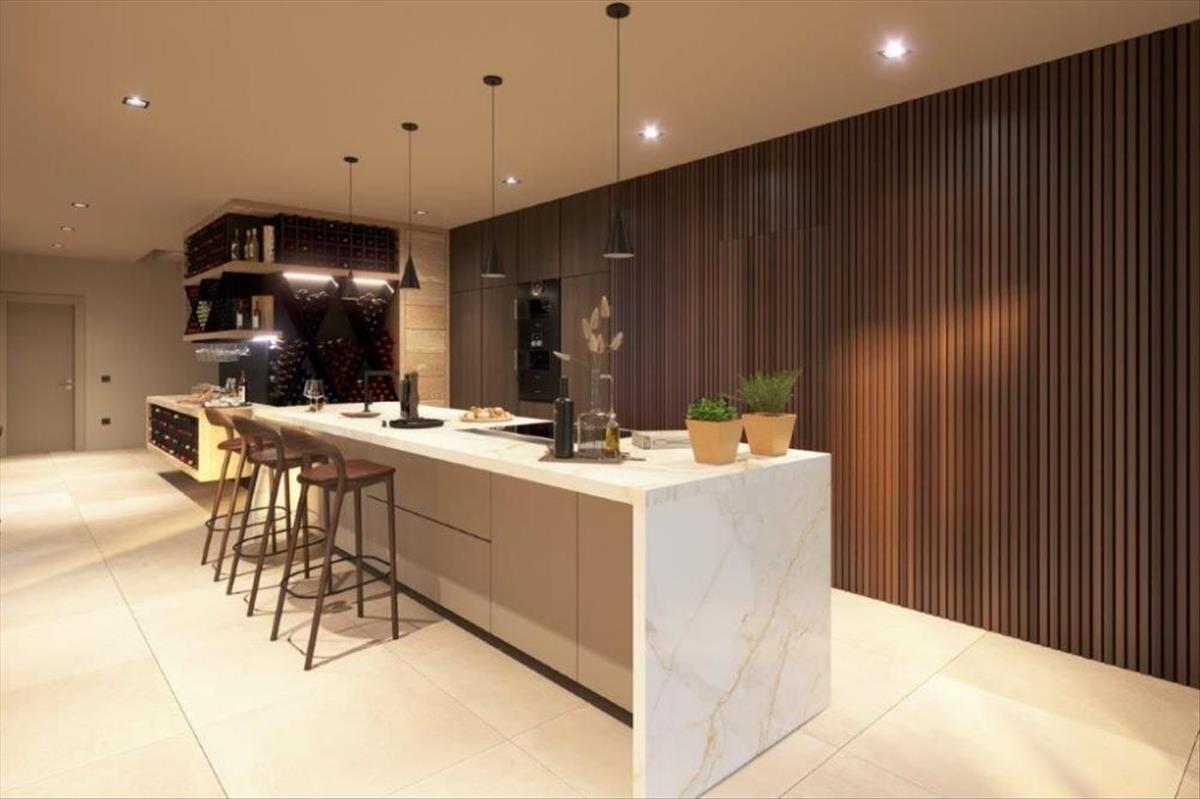 Parkosított kert 50 m2-es, sós vizű medencével, kerámiával bélelve. a kertben lesz egy 42 m2-es nyári konyha grillezővel és wc-vel, fedett parkolóval és tárolóval.