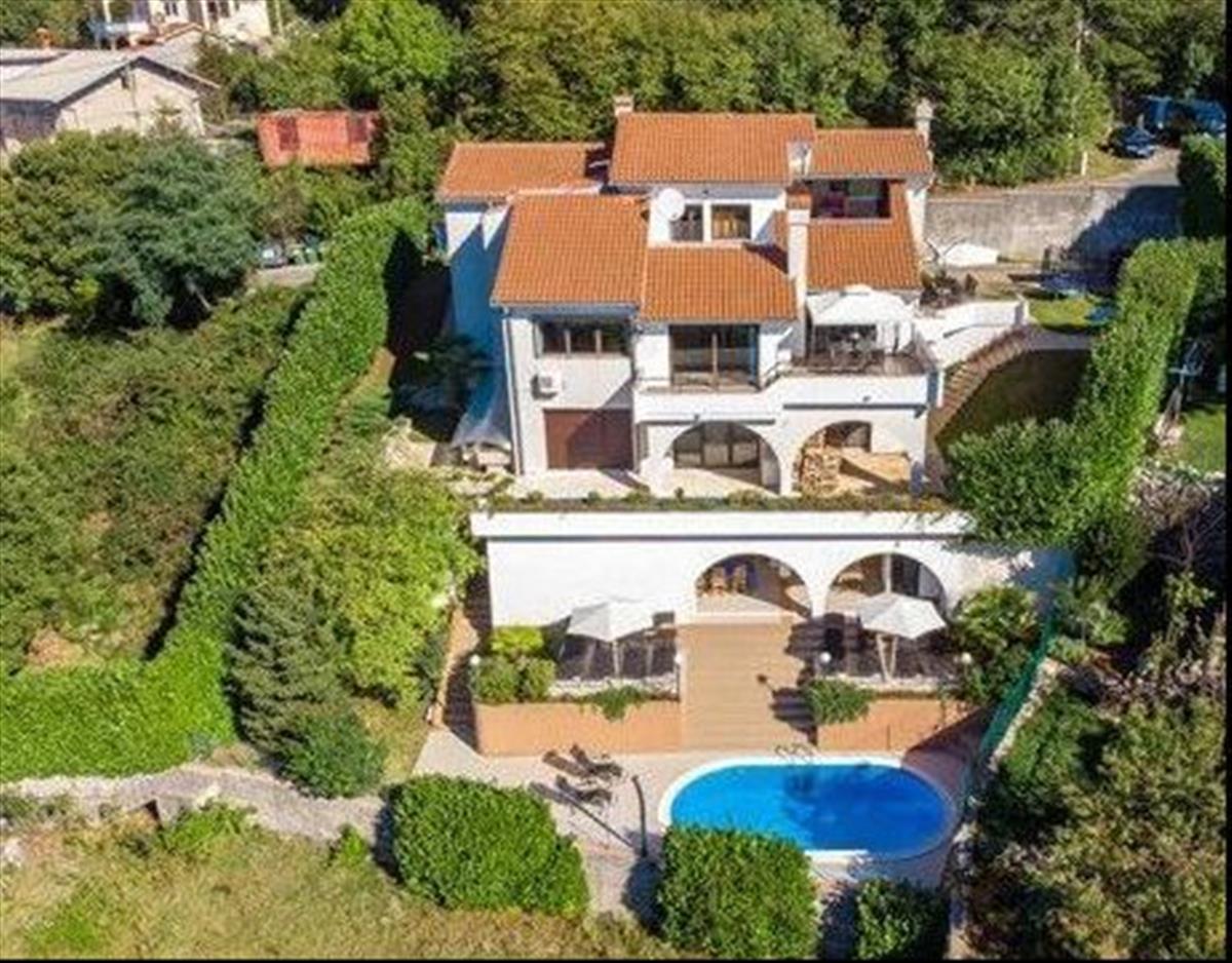 Eladó egy lenyűgöző családi ház medencével és tengerre néző kilátással Viškovo, Saršoni nyugodt és zöldövezetében, Rieja külvárosában!