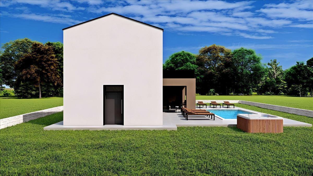 Az időtlen tervezésű villa alakjában és színében is tökéletesen illeszkedik a környező településhez és tájhoz.