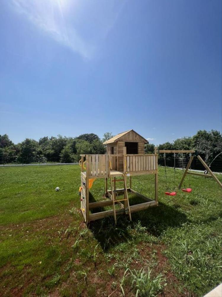 A teljesen bekerített, 1154 m2-es kertben őrzött parkoló, gyönyörű zöldfelületek kis játszótérrel, tágas napozóterület és egy szép 32 nm-es medence található.