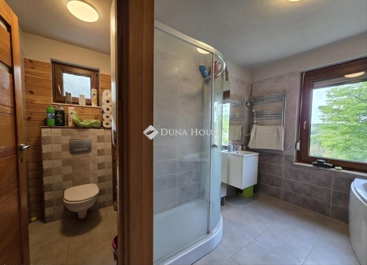 A ház egy 800 m²-es, körbekerített telken helyezkedik el, rendezett, parkosított kerttel, erdős környezetben – ideális választás mindazok számára, akik a csendet és a zöldet keresik.