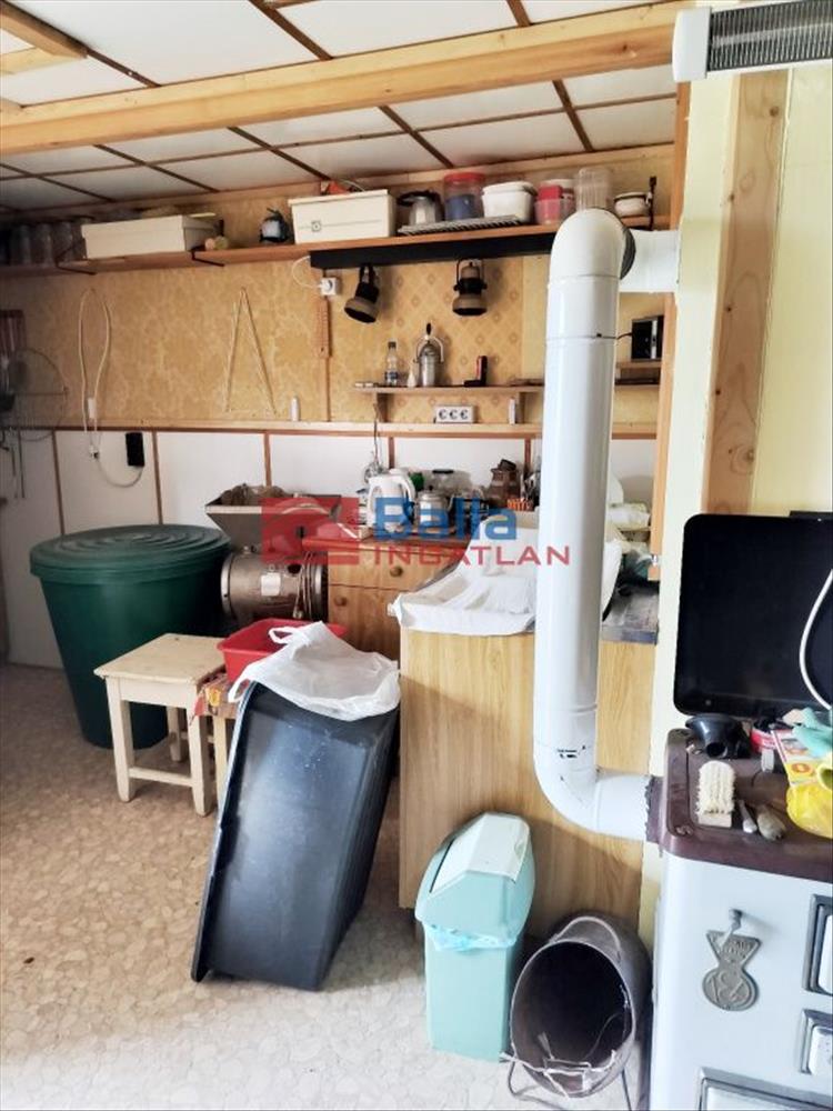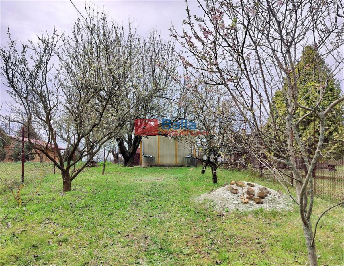 A panorámás telek vízszintes, felső szakaszán található a ház, ami 24 nm. a konyhát és a mellékhelyiséget már kialakították, kéménye is van, beüzemelt teatűzhellyel. a szennyvíz elvezetése emésztőbe megy, a víz bekötése a házba könnyen megoldható. Az utcában gáz, kábel tv, közvilágítás megoldott. Áram a házba bevezetve, működő riasztó is van. a telken van még egy tároló, két kerti csap, valamint esővíz gyűjtésére alkalmas tartályok is. a telek déli lejtős része szőlővel (kb. 40 Tő, vegyes csemegeszőlő) és termő gyümölcsfákkal beültetett, a telek felső, vízszintes részén gyümölcsfák vannak. Összesen mintegy húsz fa található a telken, köztük egy hatalmas germersdorfi cseresznye, kerepesi körték, őszi és kajszibarack, szilvák, meggy, fügefa, mandula, diók…