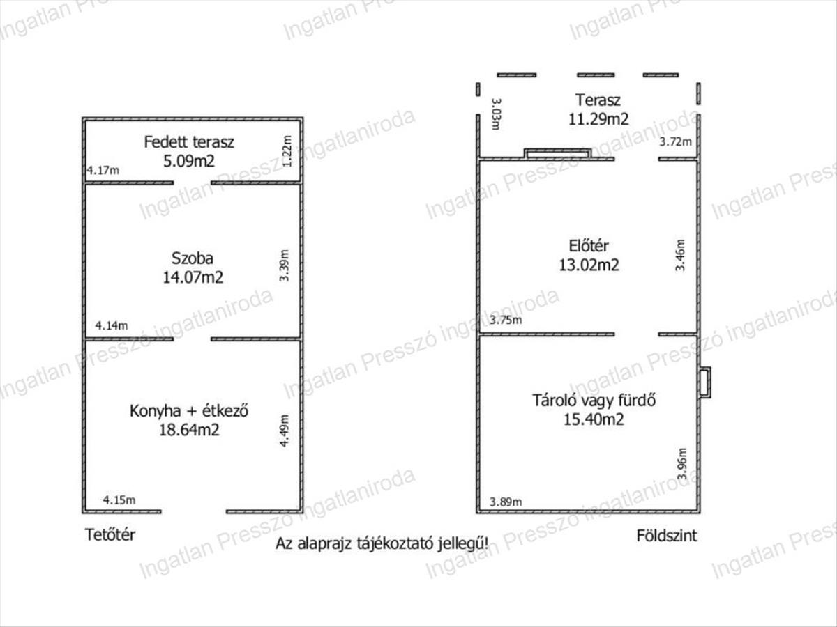 - tetőtérben konyha és étkező, szoba és fedett terasz van jelenleg