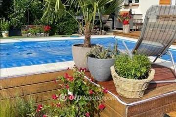 Az ingatlan része továbbá egy 7, 5 × 4 méteres fűthető medence, egy impozáns vörösfenyő terasz, valamint rendezett, zöld, parkosított kert. Az ingatlan elektromos kapuval, riasztó rendszerrel ellátott.