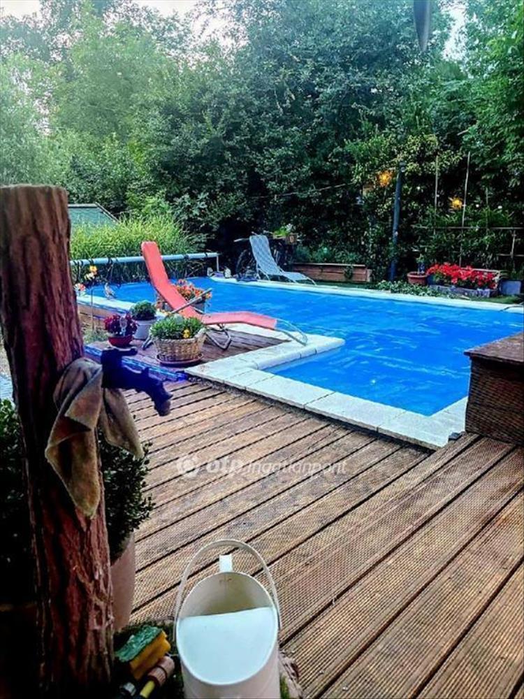 Az ingatlan része továbbá egy 7, 5 × 4 méteres fűthető medence, egy impozáns vörösfenyő terasz, valamint rendezett, zöld, parkosított kert. Az ingatlan elektromos kapuval, riasztó rendszerrel ellátott.
